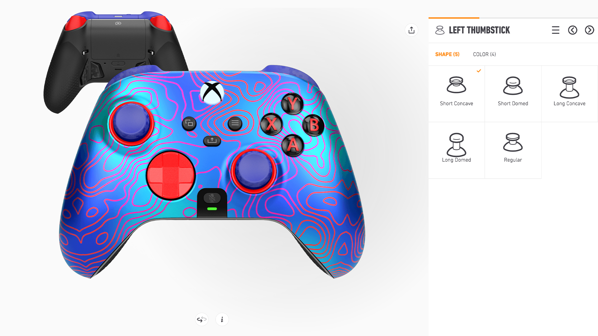 Przyciski figurowe, tj. X, Y, A i B, możecie zostawić w oryginalnych barwach lub wybrać własną. Ja zdecydowałem się, aby wszystkie literki były czerwone. Co do pada kierunkowego (krzyżaka), to możecie wybrać jeden z dwóch modeli. Macie do wyboru ten nowy, wklęsły, z padów dodawanych do Xbox Series lub starszy, zwykły “plusik” z czasów Xboxa One. Jeżeli gracie dużo w bijatyki, to oczywiście warto zdecydować się na nową wersję d-pada. Niestety producent nie zdecydował się na zaprojektowanie ośmiokierunkowego talerzyka na wzór tego z Xbox Elite Series 2.