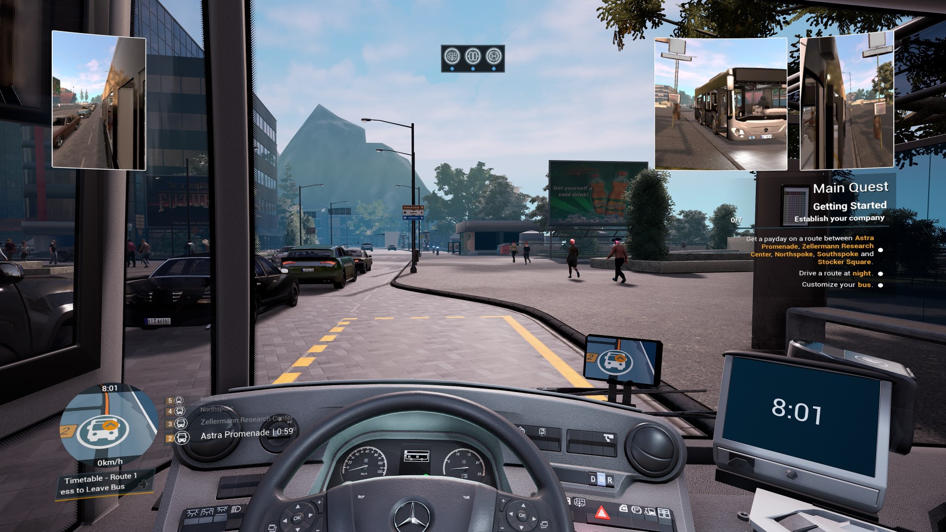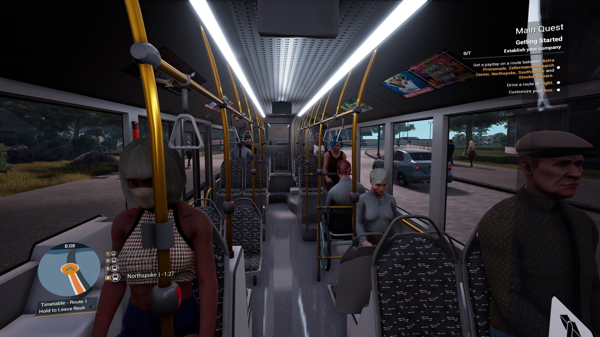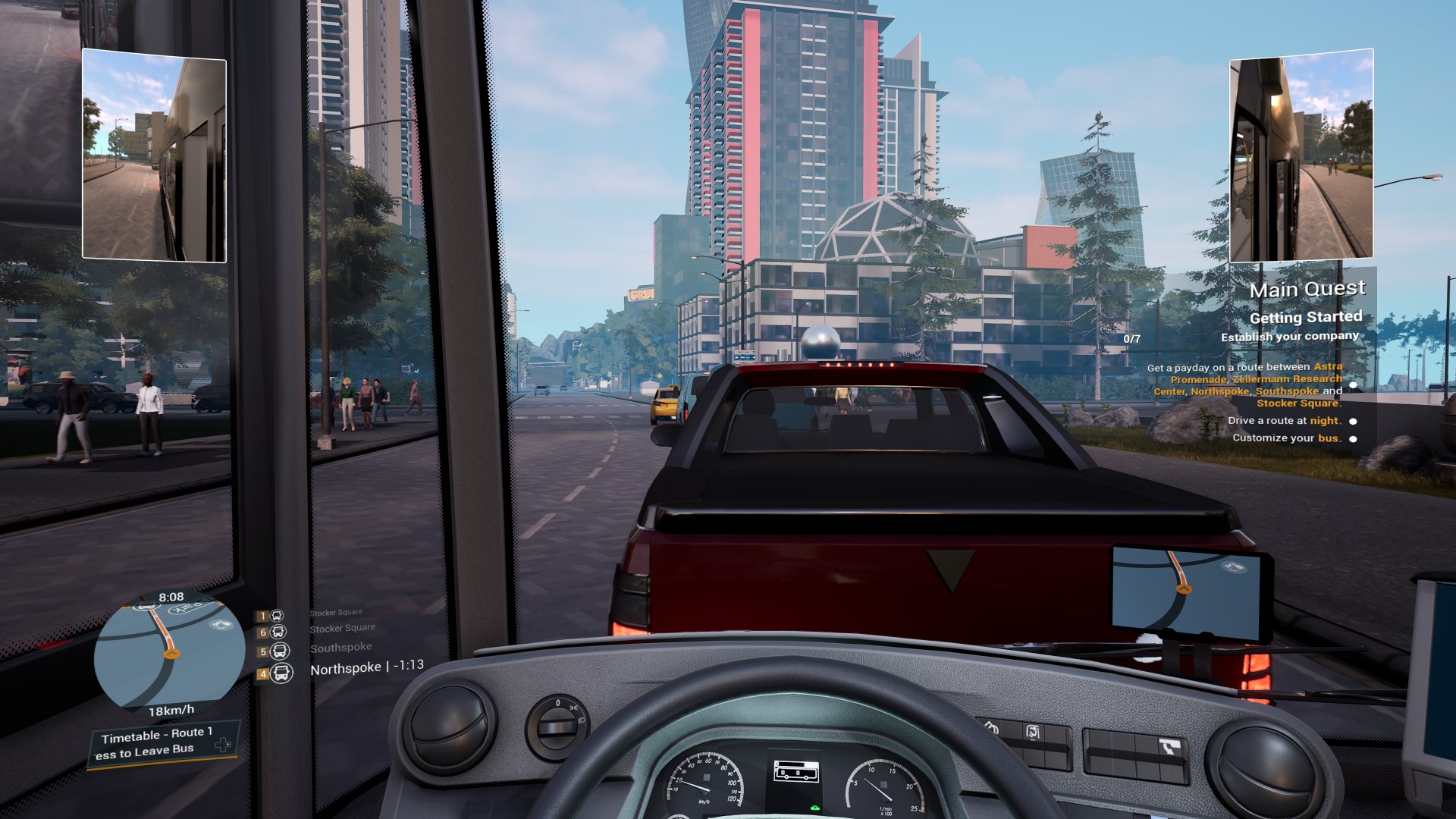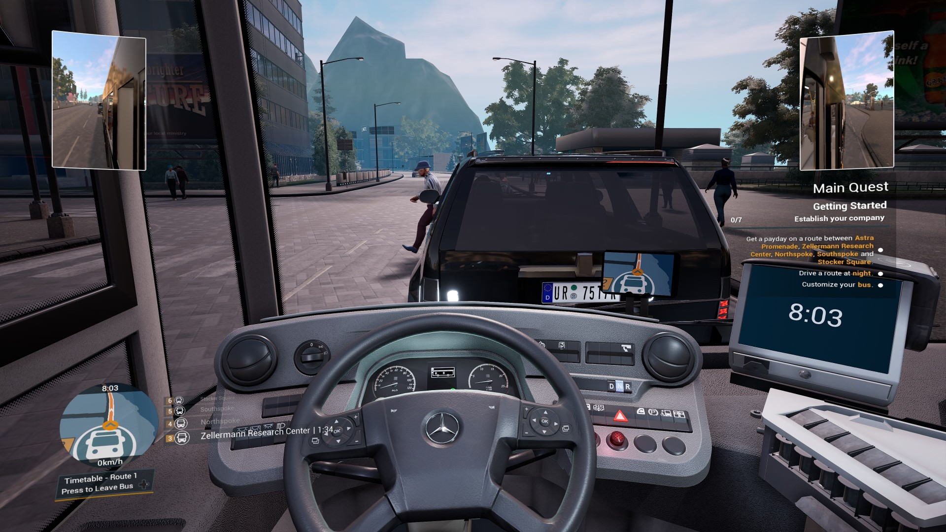 W grze nie tylko jesteśmy my i nasz autobus, ale też ludzie błąkający się po mieście i inne samochody. AI czasami szwankuje i chamsko wymusza na nas pierwszeństwo. Sami ludzie też nie należą do najbardziej zdecydowanych. Często zdarzało mi się, że przechodzień postanowił się wrócić w połowie pasów, po czym nagle zdecydować, że przejdzie.
