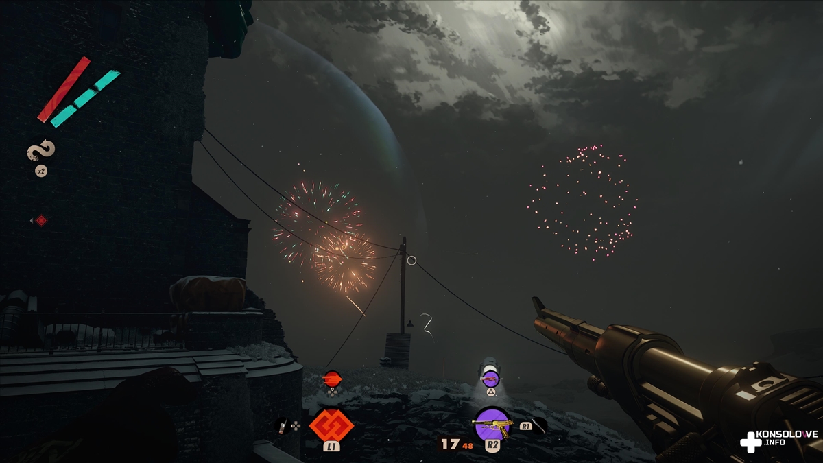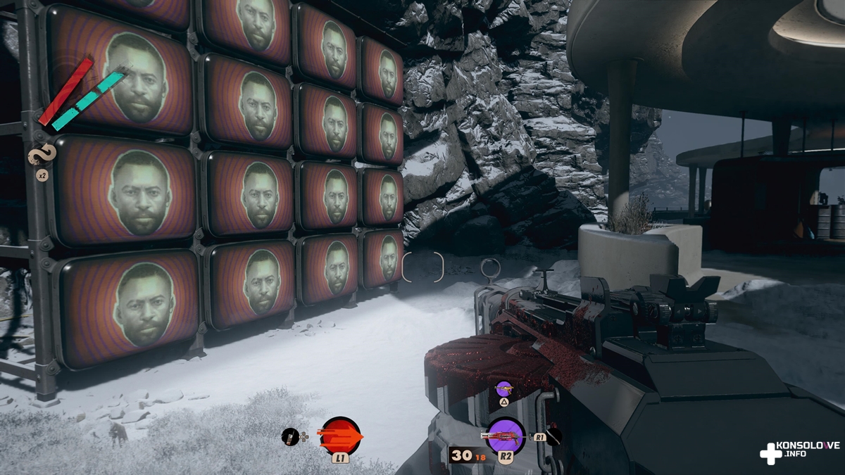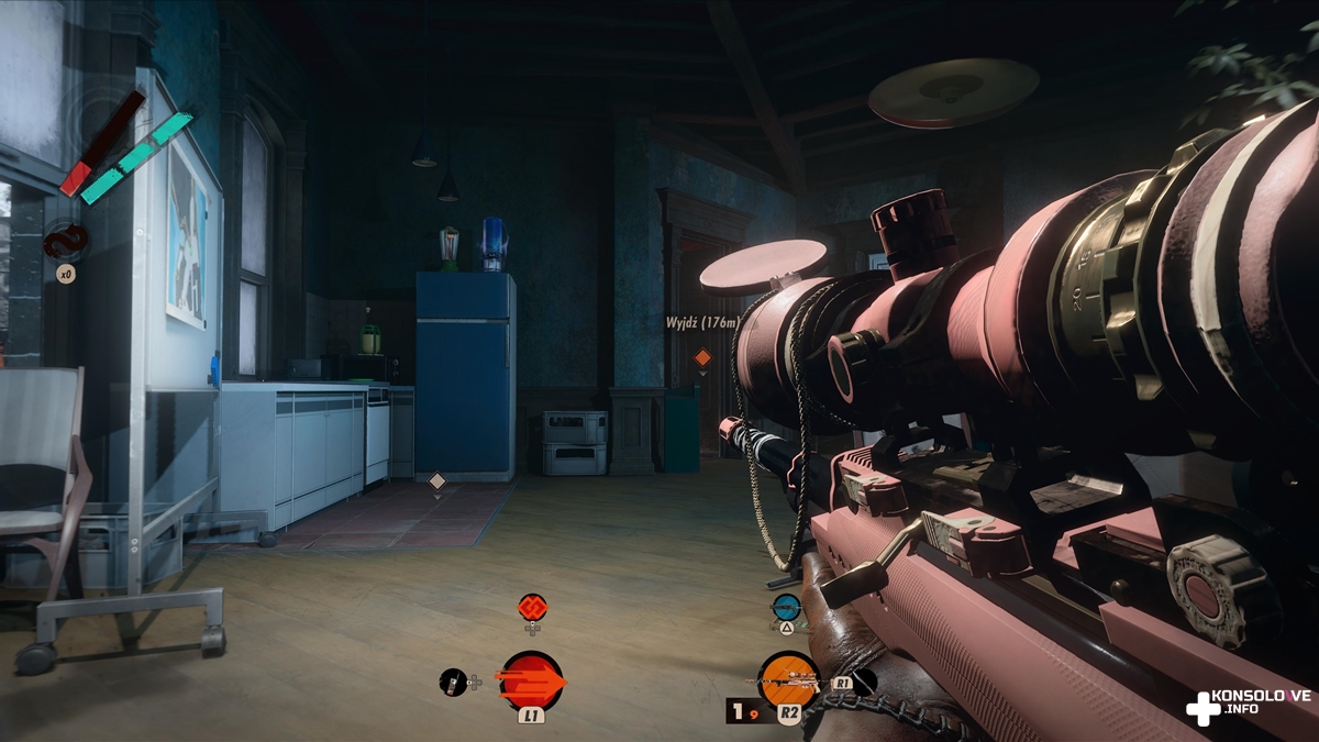 Deathloop korzysta ze stworzonej na potrzeby gry waluty – rezyduum. Bynajmniej nie odnosi się ona do mikrotransakcji. Na szczęście nie uświadczycie ich w recenzowanym tytule. Przemierzając wyspę Blackreef, natkniemy się na przedmioty emitujące fioletową poświatę. Możemy podejść do takich obiektów, a następnie przytrzymać kwadrat, by wyssać z nich rezyduum. Wykorzystamy je następnie do nasycenia naszego wyposażenia, a tym samym do zwiększania jego skuteczności. Rezyduum pozwoli nam również zachować w ekwipunku zdobyte na Wizjonerach tabliczki (o których więcej w następnym akapicie). Bardzo ważną wiadomością jest fakt, że rezyduum możemy bezpowrotnie utracić. Colt ma trzy życia – jeśli stracimy je wszystkie, pętla śmierci kręci się od nowa, a my budzimy się na początku dnia. Jeśli po odrodzeniu się podejdziemy do miejsca, w którym polegliśmy i znajdziemy swoje ciało, będziemy mogli odzyskać zgromadzone do tamtej chwili rezyduum.