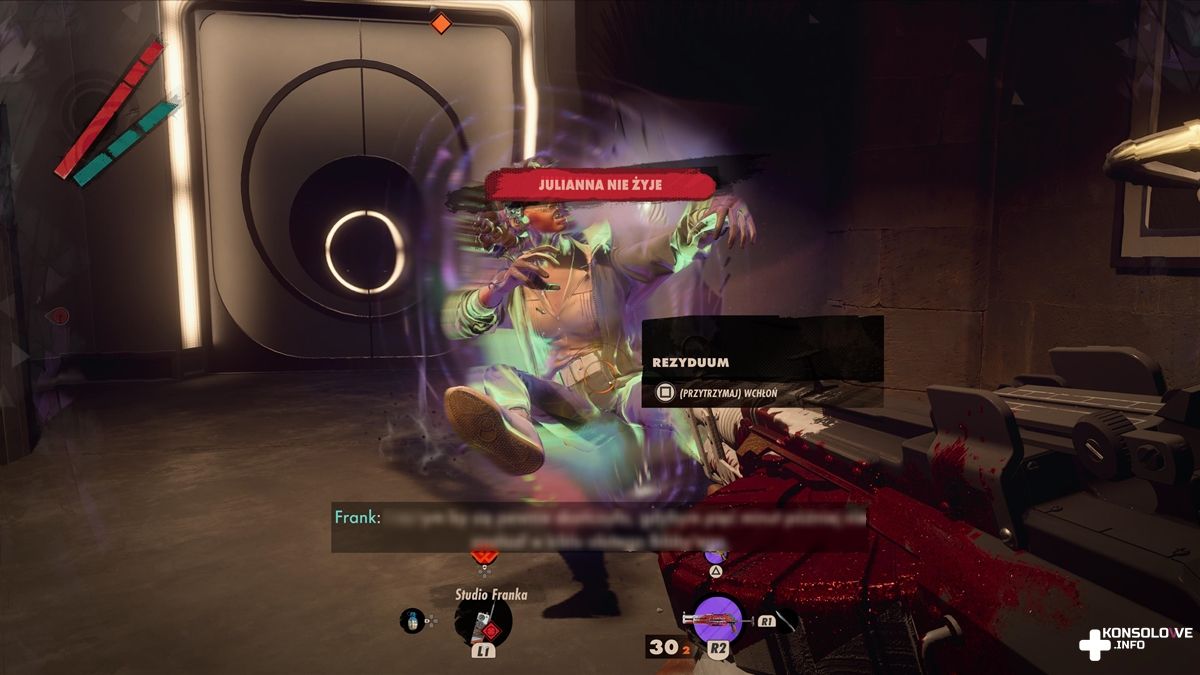 Jedną z najciekawszych cech Deathloop jest zaimplementowany system najazdów rozgrywki. Jak mogliście przeczytać wyżej, grając jako Colt możemy natknąć się na Juliannę. Czy rozgrywka jako ta postać brzmiała dla Was interesująco? Jeśli tak, mam dla Was dobrą wiadomość. Relatywnie wcześnie odblokujemy możliwość wcielenia się w tę kobietę i nawiedzania sesji innych graczy. Możemy atakować światy dowolnej osoby, jak i graczy z naszej listy znajomych. Oczywiście to jest najciekawszy wariant. Nic nie zastąpi przecież późniejszego dyskutowania z kolegą o tym, jak wyglądała nasza sesja. Z uwagi na stosukowo niewielkie obłożenie serwerów przed premierą nie jestem w stanie stwierdzić, czy matchmaking będzie stanowił problem po dniu wydania gry. Jednak bez trudu udało mi się spotkać na jednej mapie z Konradem, który starał się uprzykrzać mi życie. Bardzo dobrą opcją jest bowiem możliwość nawiedzenia rozgrywki naszego konkretnego znajomego. Alternatywnie można przeszkadzać dowolnemu losowemu graczowi. Niżej znajdziecie nasz fragment rozgrywki. Grając jako Julianna możemy oczywiście odblokowywać alternatywne stroje, co z pewnością docenią osoby ceniące możliwość spersonalizowania wyglądu swojej postaci.