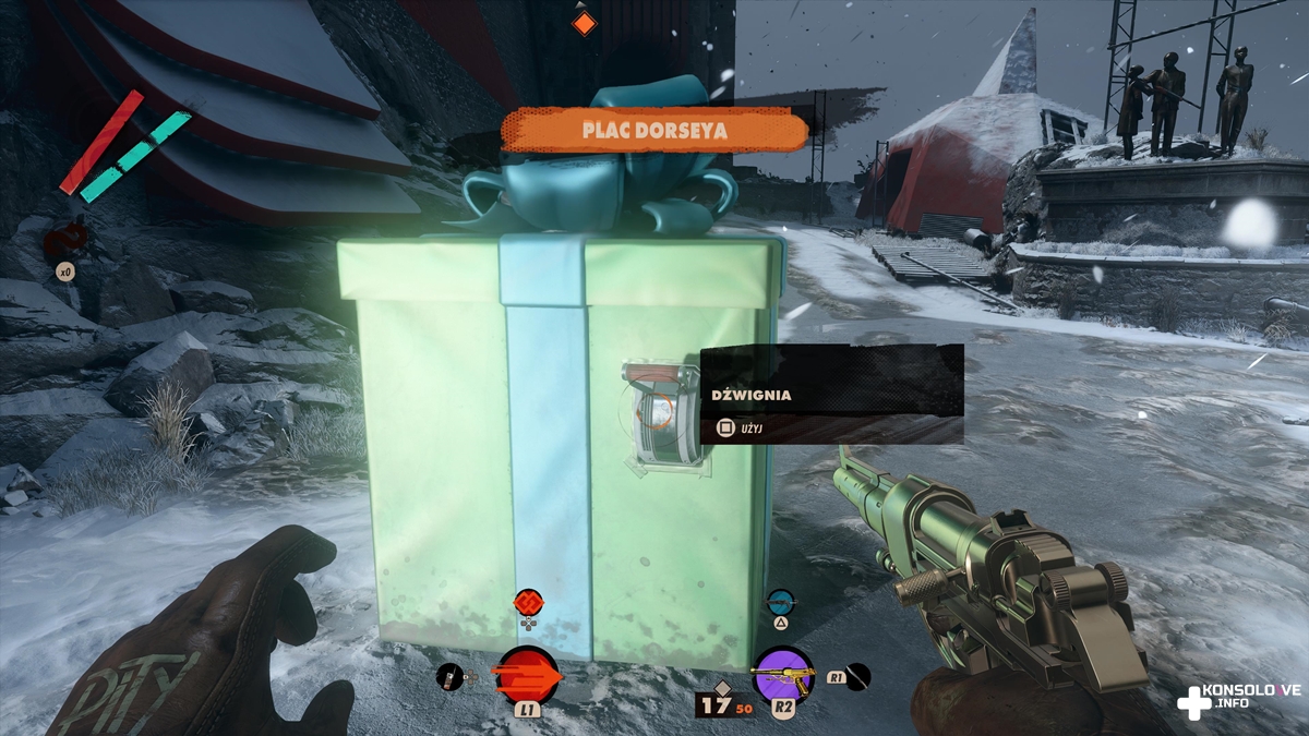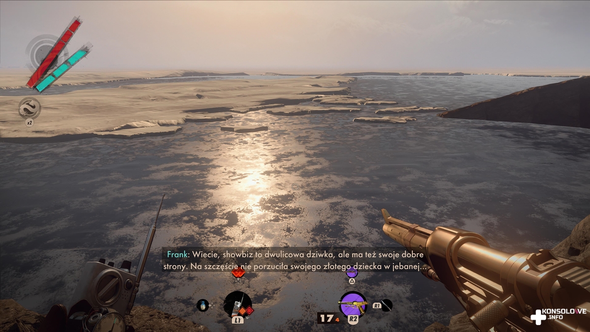Deathloop to tytuł dostępny na konsolach wyłącznie na PlayStation 5. Można się więc spodziewać wykorzystania funkcji pada DualSense. Tak jest w istocie. Przemierzając różnego rodzaju nawierzchnie, poczujemy różne wibracje dzięki efektom dotykowym. Będą one oczywiście silniejsze jeśli będziemy biegać lub wykonywać ślizg. Efekty dotykowe odwzorowują również przeładowywanie broni – różne animacje wiążą się z innym zaadaptowaniem wibracji. Jest to na pewno interesujące przeżycie, aczkolwiek nie uważam, aby były one wybitnie zrealizowane. W takim Astro’s Playroom czy The Medium efekty dotykowe były zaimplementowane nieporównywalnie lepiej. Gra wykorzystuje również adaptacyjne spusty. Każda broń odznacza się różnym, odpowiednim dla niej, momentem blokowania i zwalniania spustów. Jestem fanem tej funkcji i Arkane udało się świetnie zastosować ją w swoim dziele. Niektóre bronie potrafią się co jakiś czas zaciąć – wtedy spusty są oczywiście blokowane, co bardzo korzystnie wpływa na immersję. Gra wykorzystuje również głośnik kontrolera. Colt co jakiś czas słyszy komunikaty przez hakofalówkę (za pomocą której hakuje się też do urządzeń elektronicznych). Jeśli nie gramy w słuchawkach, komunikaty radiowe dobiegają nas właśnie z hakofalówki. To dobry, sensowny pomysł. Ogólnie wykorzystanie funkcji DualSense’a jest bardzo dobre i poza zbyt oszczędnym korzystaniem z efektów dotykowych nie mogę się do niczego przyczepić.