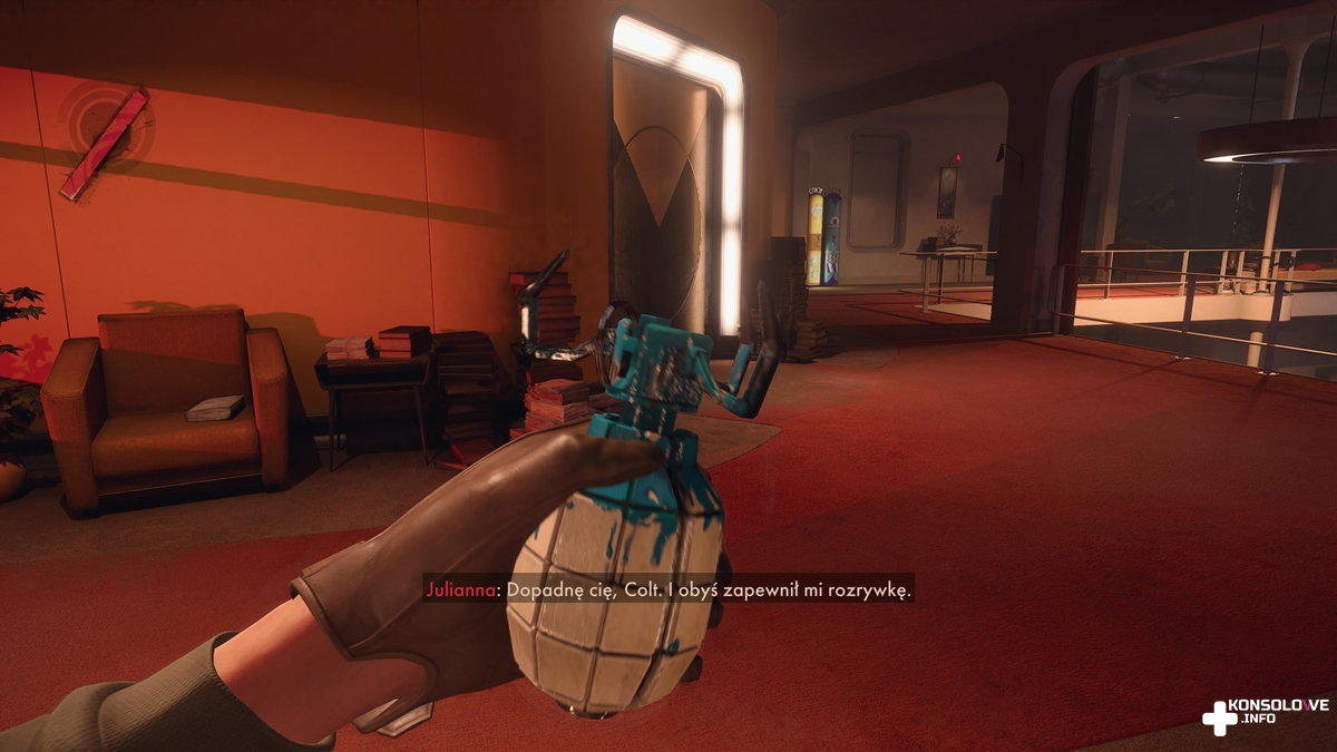 Historia jest jednym z najlepszych punktów Deathloop. Między innymi z tego powodu nie zamierzam Wam przedstawiać wszystkich wydarzeń, które dzięki niej poznamy. Nie chcę Wam zdradzać wszystkich jej elementów również z innych, dość egoistycznych, przesłanek. Jestem bowiem zatwardziałym przeciwnikiem spoilerów. Psucie komukolwiek samodzielnego poznawania opowieści jest ostatnim, na co mam ochotę, pisząc, czy rozmawiając o jakiejś grze. W tym akapicie nie znajdziecie więc szczegółowej prezentacji fabuły. Zreferuję jedynie jej podstawowe założenia, o których wiadomo od dawna z materiałów promocyjnych. Jeśli i to to dla Was za dużo, przejdźcie do następnego akapitu. Jeżeli natomiast zdecydowaliście czytać dalej, to już przybliżam tło fabularne. Głównym bohaterem jest Colt. Mężczyzna utknął w pętli czasu, którą przerwać może wyłącznie zabicie 8 Wizjonerów. Mamy na to zaledwie dobę – po jej zakończeniu pętla rozpoczyna się od nowa. Na domiar złego na swój cel obrała nas Julianna.