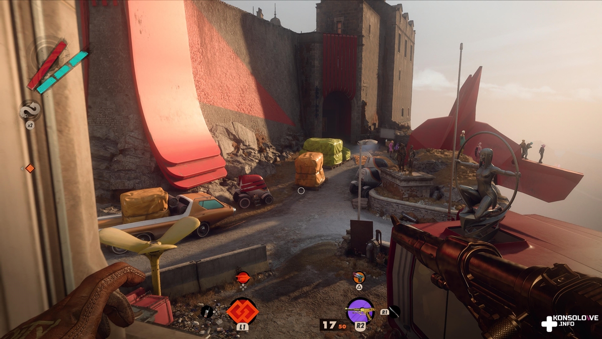 Produkcja studia Arkane Lyon jak mało która inna premiuje zwiedzanie. Przemierzając dzielnice wyspy Blackreef, możemy natknąć się na wiele dokumentów czekających, aż się z nimi zapoznamy. Nie tylko zwiększają one naszą wiedzę o świecie gry od strony lore. Przede wszystkim stanowią źródło informacji, które możemy wykorzystać, planując swoje działania. Przeczesując notatki w jednej dzielnicy, możemy się dowiedzieć, jaki jest kod do drzwi lub sejfu w innej. Następnie, udając się w to miejsce i korzystając z kodu, zdobędziemy nowy zapis rozmowy, z którego wynika harmonogram dnia jednego z Wizjonerów. Dzięki temu możemy się na przykład dowiedzieć, że dwoje z nich spotyka się o określonej porze w konkretnym miejscu. Wiedza to potęga w Deathloop. Bez umiejętnego rozplanowania ataków nie przerwiemy pętli. Studiu Arkane udało się stworzyć grę, w której kolejne iteracje pętli są przygotowaniem do ostatecznej drogi do jej przerwania. Nagrody za zwiedzanie świata, nowe informacje, są świetną motywacją – skutecznie zachęcają do przemierzania zróżnicowanej wyspy. Oczywiście to nie jedyny element rozgrywki. Bardzo istotna jest również…