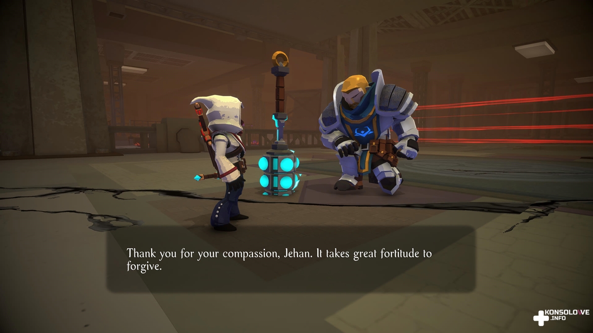Wspomniałem wyżej o możliwości wybrania podejścia do starć. Przekłada się to również na ataki, z jakich będą korzystali przeciwnicy. Jeżeli przyjmiemy postawę nastawioną na ogłuszanie, wrogowie będą stawiali głównie na ataki wręcz. Natomiast jeśli dobędziemy miecza, przeciwnicy nie będą się wahali i skorzystają między innymi z granatów, chcąc szybko pozbyć się Jehana. Bardzo pozytywnie zaskoczyło mnie takie dostosowywanie się do naszych poczynań. Nierzadko będziemy też mieli możliwość wyboru kwestii dialogowej. Będziemy dzięki temu mogli zadecydować o losie napotkanej postaci, a także wyrazić chęć udziału w walce bądź postawić na bardziej pokojowe rozwiązanie. Mało tego, niektóre starcia – jeśli będą się za długo przeciągały – mogą sprawić, że nie dotrzemy w porę do innej postaci, a tym samym nie zdołamy jej uratować. Mało tego, finalna potyczka z bossem może nawet nie dojść do skutku, jeśli odpowiednio poprowadzimy rozmowę.