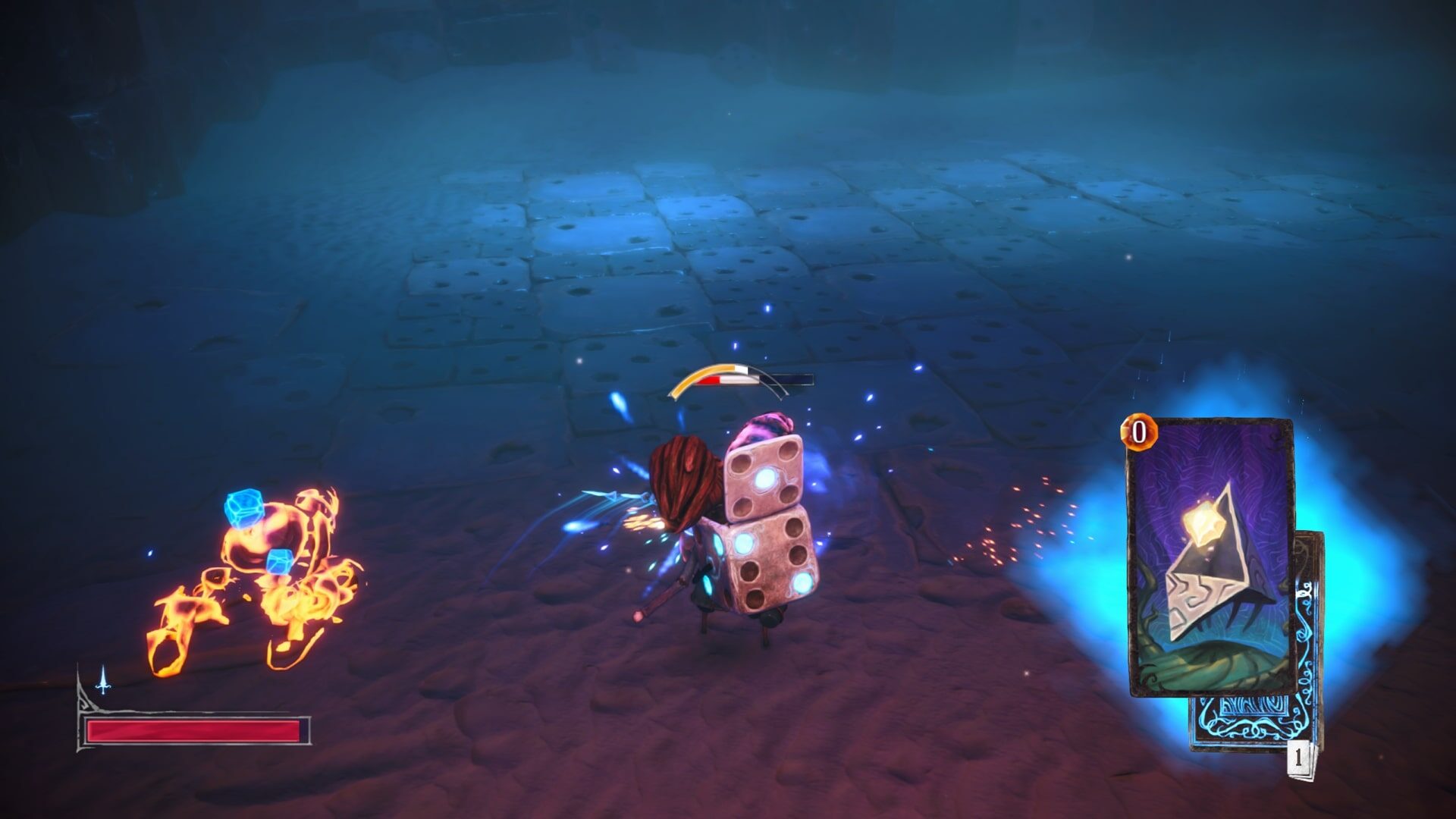 Naszym początkowym wyposażeniem jest tylko Dicey oraz proca, która jednak sama z siebie nie rani przeciwników. Najważniejszym zadaniem na starcie będzie więc rozbijanie kryształków, które przyczepione będą do naszych wrogów. Zbierając je, napełniamy poziom energii Dicey’iego, który będzie mógł nam maksymalnie wyrzucić na raz pięć kart z naszego wybranego decku.