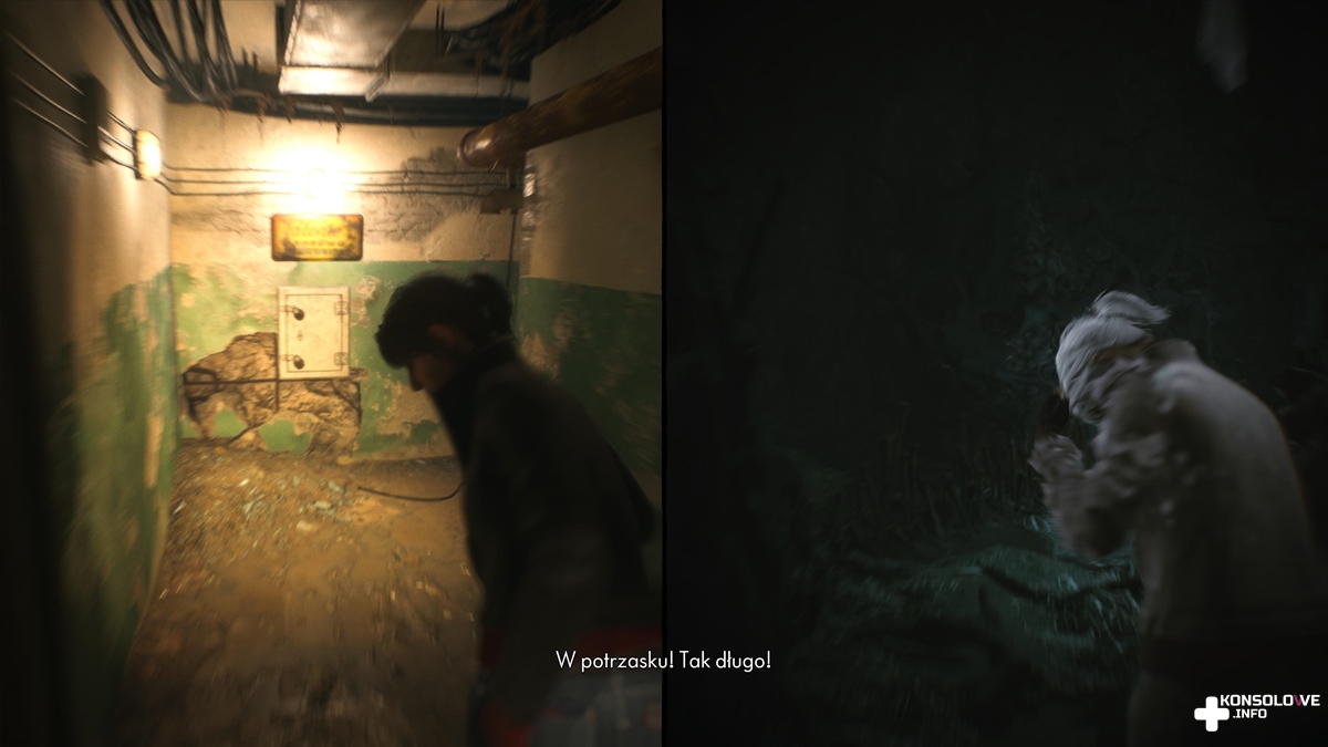 Jak wspomniałem na początku niniejszego wpisu, The Medium korzysta na PS5 w funkcji zapewnianych przez kontroler DualSense. Dzięki temu możemy więc korzystać z wychylania pada dla oglądania przedmiotów z różnych stron. Jeśli Marianne będzie zajęta wspinaniem się (na przykład na kontener), oba spusty będą zablokowane. Bardzo miło zaskoczyło mnie zaimplementowanie efektów dotykowych. Tu nawet przesuwanie ręką po ścianie w przerywniku filmowym wywołuje odpowiedni efekt! Mało tego, wibracje delikatnie, ledwo wyczuwalnie aktywują się w określonych momentach, aby oddać pewne poczucie niepewności, zagrożenia. Te subtelne drgania niesamowicie tworzą klimat i jestem pod ogromnym wrażeniem. Brawo, Bloober Team. Bardzo miłym smaczkiem jest też wpływanie na podświetlanie pada. Odznacza się ono tym większą częstotliwością, im bliżej jest potwór. To świetny zabieg, który nie tylko ułatwia nam przeniesienie się do gry, ale i ułatwia zorientowanie się, kiedy można iść dalej. Zobaczcie sami na poniższym kilkusekundowym filmie.
