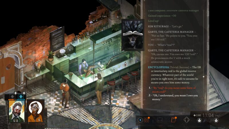 Disco Elysium to bardzo ciekawy tytuł. Wykreowany w nim świat jest niesamowicie bogaty, a przedzierając się przez sprawę tajemniczego morderstwa, będziemy mieć szansę odkryć także historię świata gry i obecnego regionu. Bo wiecie, akcja dzieje się w roku ’51, choć nie wiemy, którego wieku. Wiemy, że to przyszłość, bo są odniesienia do ustrojów politycznych i postaci, które powinniśmy znać z historii czy WOS-u. Regiony jednak, miasta i rasy są absolutnie nowe. Jeśli chcemy, możemy o nich poczytać podczas rozmów z wieloma postaciami.
