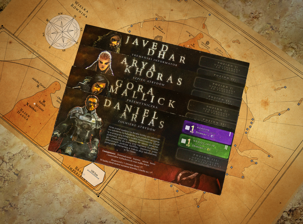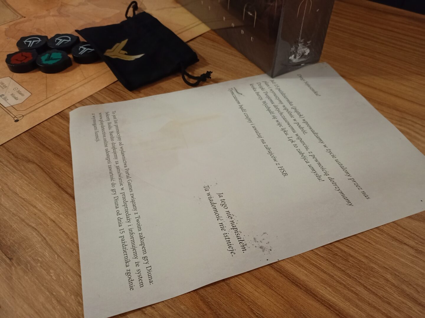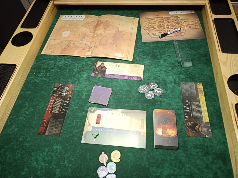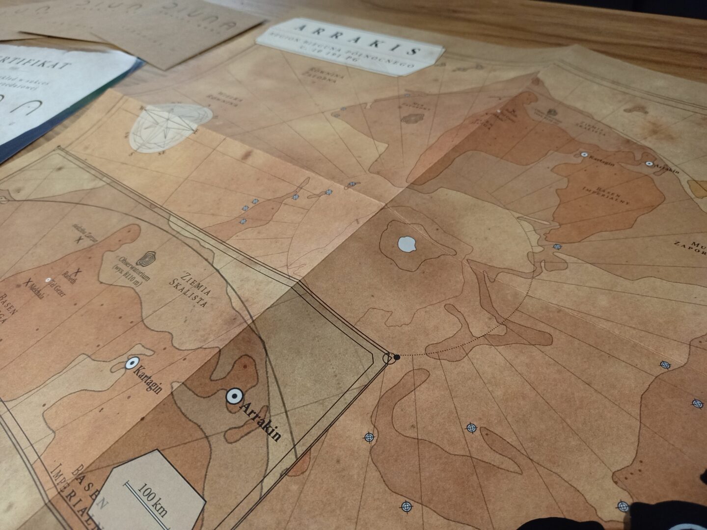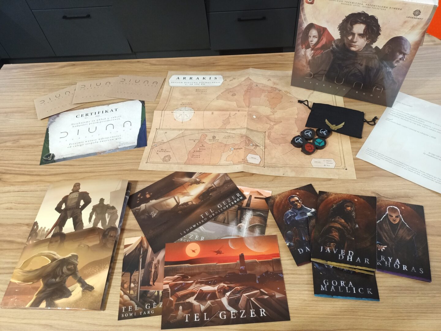 Ostatecznie na Arrakis udaliśmy się w 3 osoby. Wziąłem ze sobą nie lada chwatów, ponieważ Daniel i Iwona to weterani Detektywa i Wiedeńskiego Łącznika, gier gatunkowo do Diuny bardzo zbliżonych. Zanim przejdziemy jednak do samych wrażeń z rozgrywki, słów kilka o wydaniu.