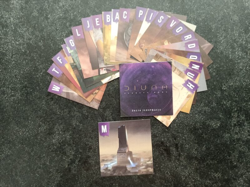 Ważnym udogodnieniem w porównaniu do Detektywa, jest talia ilustracji. Ilustracje przedstawiają najważniejsze skrawki informacji, które odkryliśmy podczas naszych działań na Diunie, czyli postaci, miejsca i przedmioty. Również na tych kartach pojawi się niekiedy możliwość podjęcia jakiegoś działania. Najważniejsze jest to, że łatwo je wyciągnąć z talii, a następnie użyć do budowy mapy myśli na tablicy. Wtedy też będziecie mogli zwrócić uwagę na jakość ilustracji, które są bardzo klimatyczne i po prostu ładne.