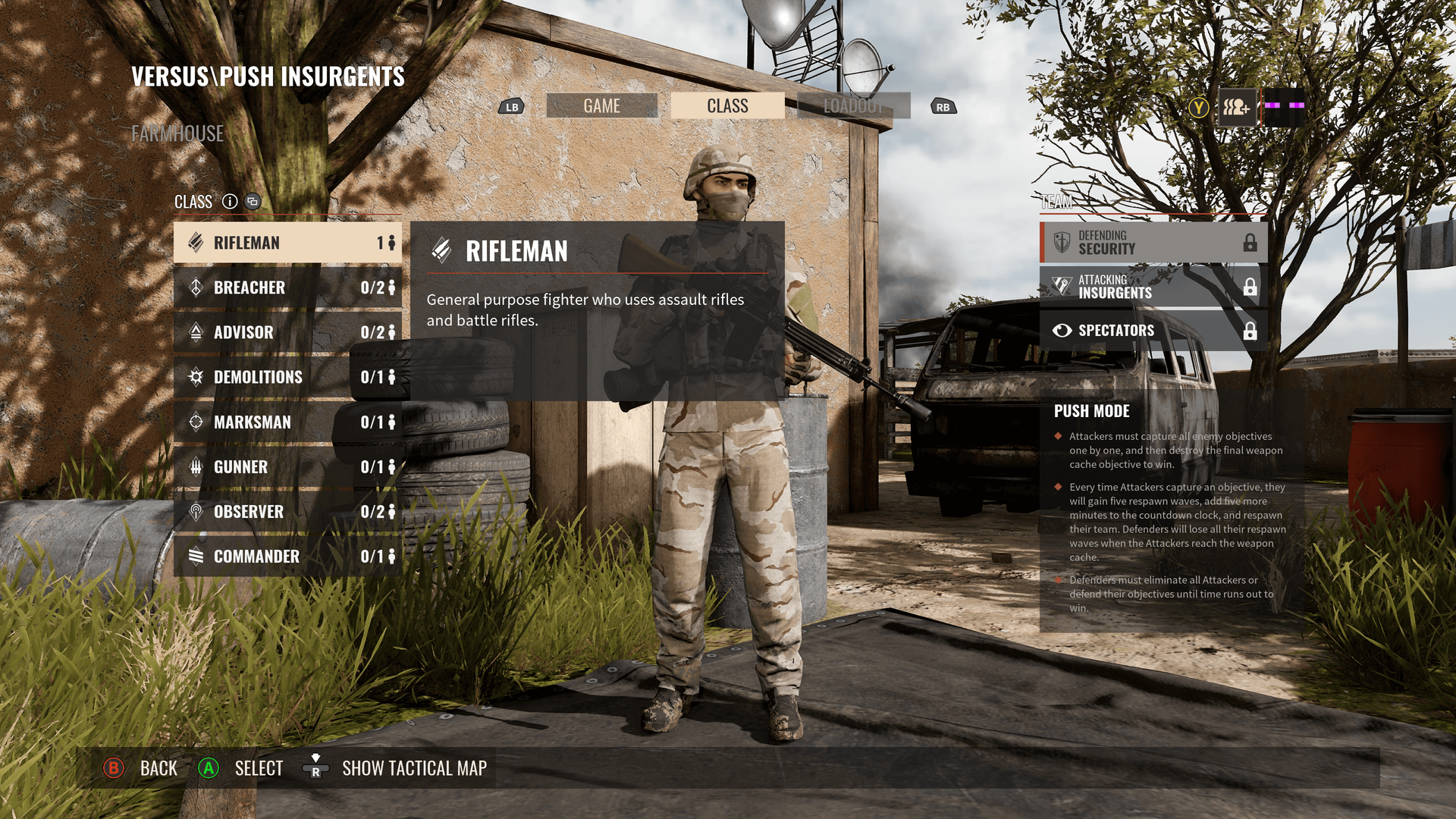 - Checkpoint i Hardcore Checkpoint, przejmujemy wybrany punkt, bronimy go i przechodzimy do następnego, powtarzając cały proces kilka razy. Wersja Hardcore to po prostu trudniejsi przeciwnicy, mniej amunicji i brak oznaczeń twój/nieprzyjaciel.