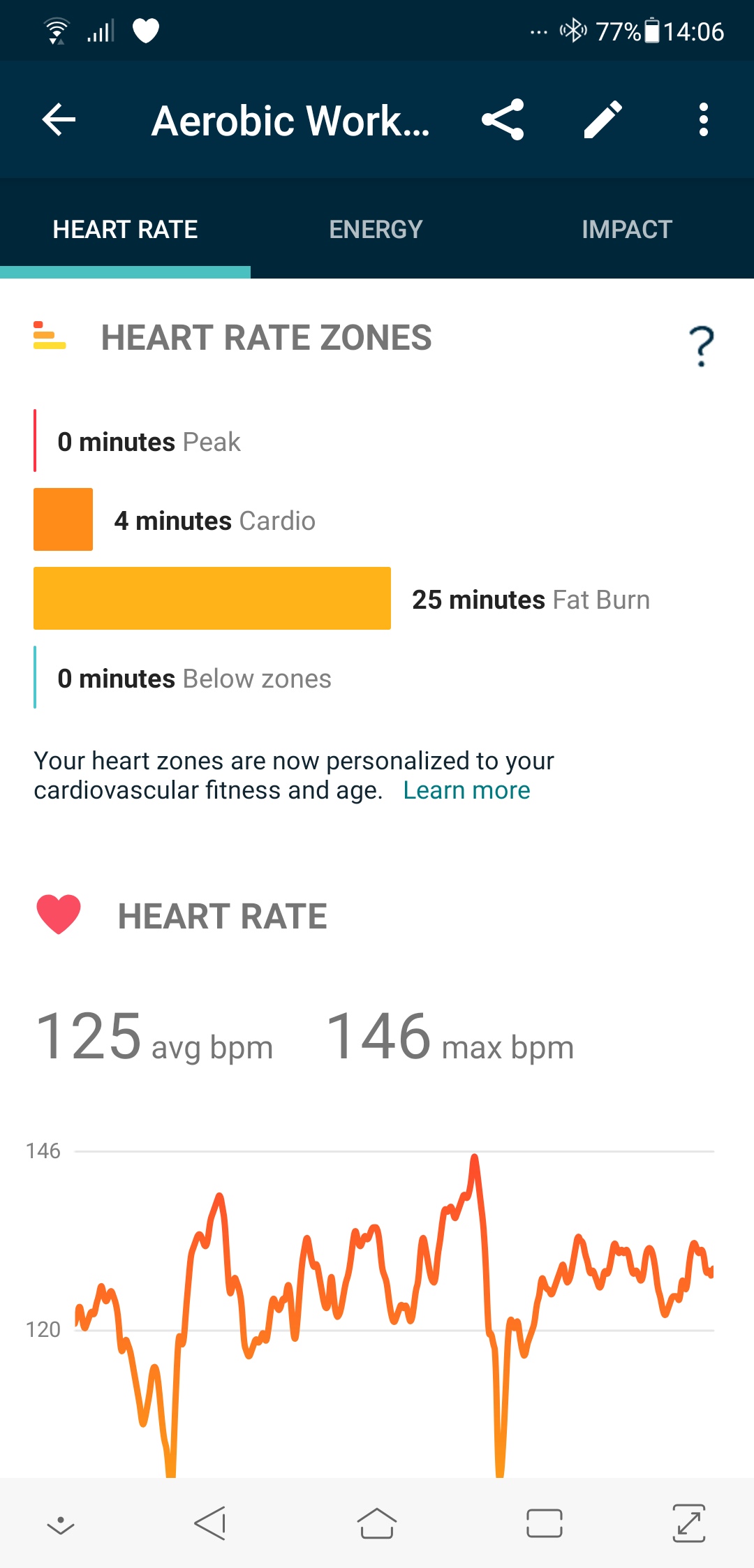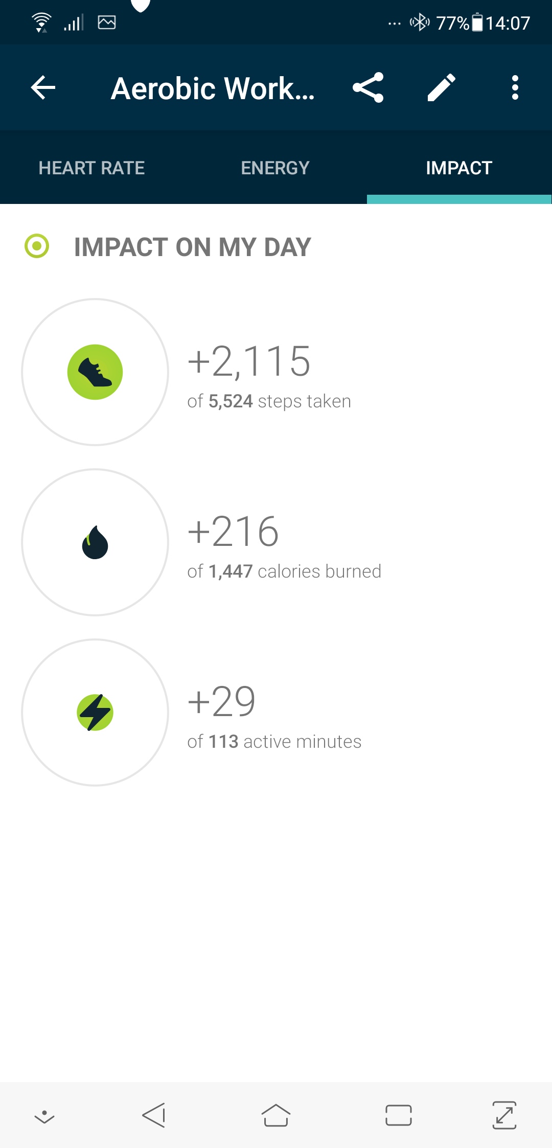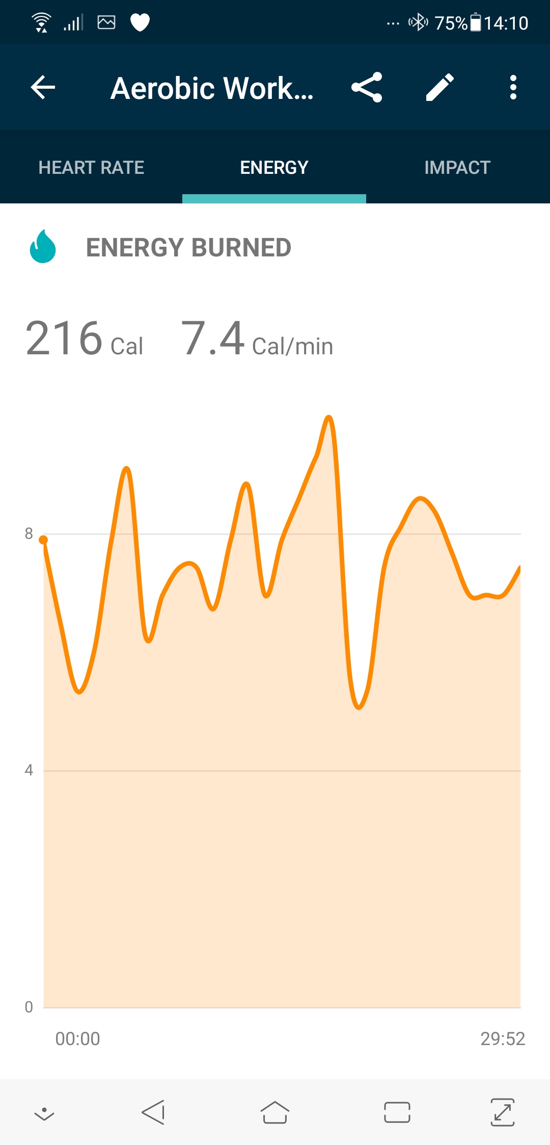 Jedną z rzeczy, za które uwielbiam Just Dance jest właśnie ten Aerobik. Wskakując do gry parę razy w tygodniu, zafundujecie sobie całkiem niezły trening. Mój Fitbit sam wyłapał, że to właśnie Aerobic i tak wyglądają wyniki z 30-minutowej sesji z grą: