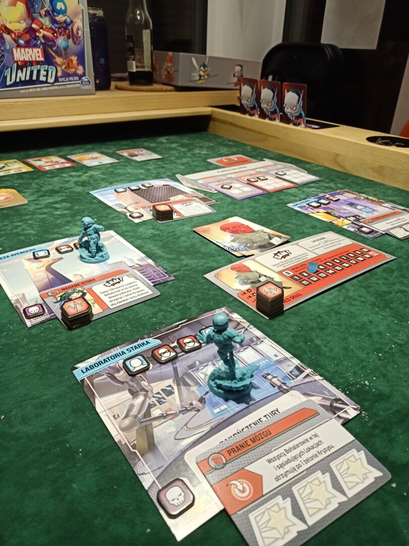 Jak już wspominałem przy opisie zasad, cały czas korzystamy z podstawowych umiejętności kart, które do osi akcji dodał nasz poprzednik. Mamy więc wrażenie iście filmowej współpracy Avangersów. Jednak wszystko to byłoby niczym, bez złoczyńców. W Marvel United możemy stanąć naprzeciw Red Skulla, Task Mastera albo Ultrona. Sterowani są autonomicznie przez grę, mało przewidywalni i ciągle groźni. Sama rozgrywka przypomina sekwencję akcji z filmów Marvela, jest bardzo dynamiczna. Trwa około 30-45 minut i nie ma w niej chwili na nudę!
