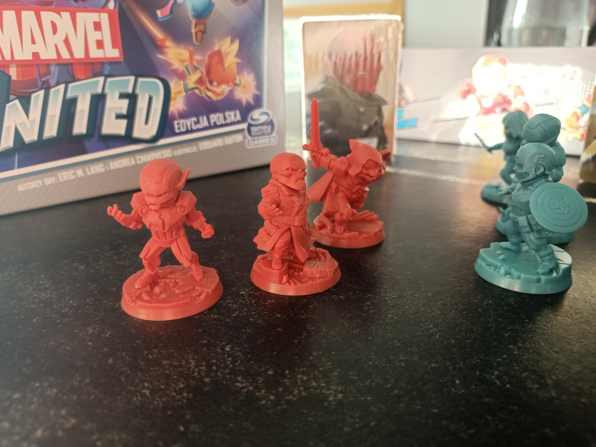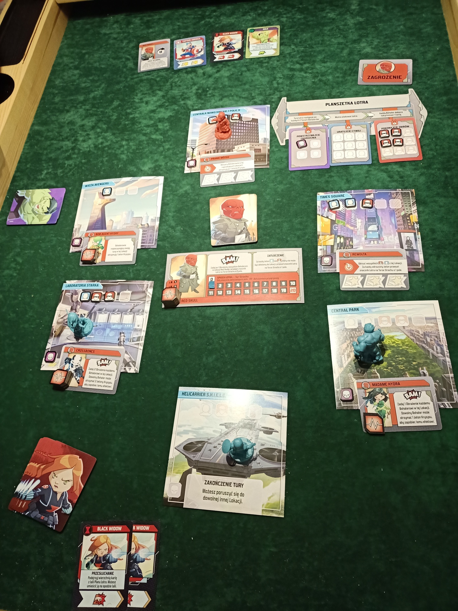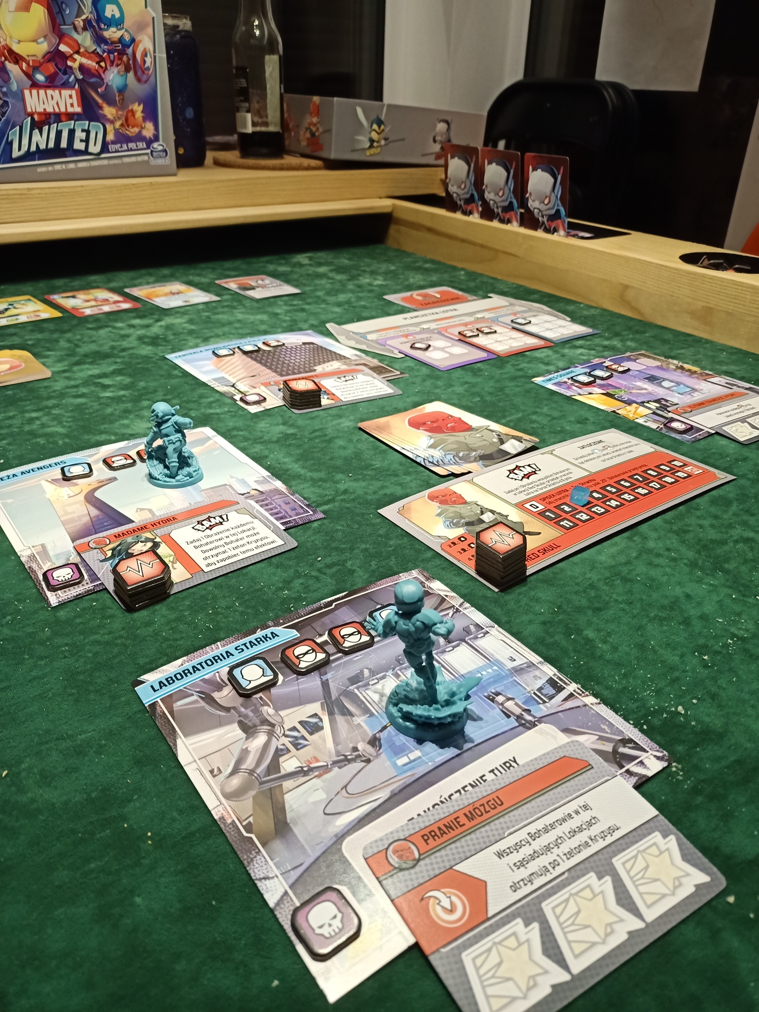 Jak już wspominałem przy opisie zasad, cały czas korzystamy z podstawowych umiejętności kart, które do osi akcji dodał nasz poprzednik. Mamy więc wrażenie iście filmowej współpracy Avangersów. Jednak wszystko to byłoby niczym, bez złoczyńców. W Marvel United możemy stanąć naprzeciw Red Skulla, Task Mastera albo Ultrona. Sterowani są autonomicznie przez grę, mało przewidywalni i ciągle groźni. Sama rozgrywka przypomina sekwencję akcji z filmów Marvela, jest bardzo dynamiczna. Trwa około 30-45 minut i nie ma w niej chwili na nudę!
