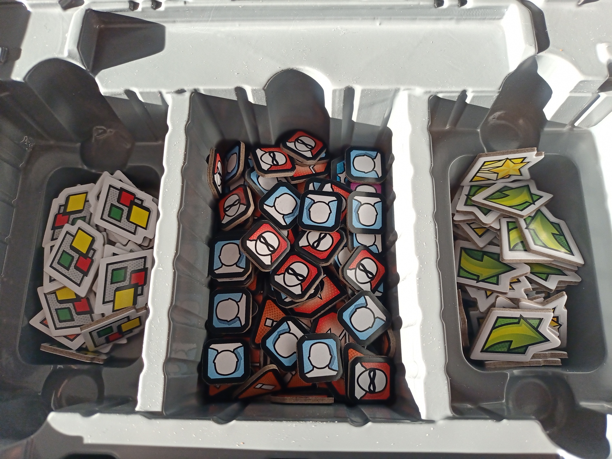 Myśleliście, że to koniec elementów gry? Łatwo przeoczyć pojedynczy znacznik łotra – uważajcie aby nie wyrzucić go początkowo z pudełka. W Marvel United dostaniemy jeszcze 9 różnych typów żetonów (w sumie 156 kartoników). W pudełku przewidziano 3 wanienki na ich przetrzymywanie (z czego dwie są naprawdę małe). Uważam, że dałoby się z wypraski wyciągnąć jeszcze więcej właśnie w kwestii segregowania żetonów. Ostatnim elementem gry jest instrukcja, którą opiszę w kolejnym akapicie. Podsumowując jakość wykonania: może nie jest ona idealna, jednak na pewno notuje plus. Figurki są prześliczne i dzięki wyprasce są świetnie wyeksponowane. Dodatkowo wypraska przyspiesza rozstawienie i złożenie gry, choć mogłaby lepiej składować żetony.