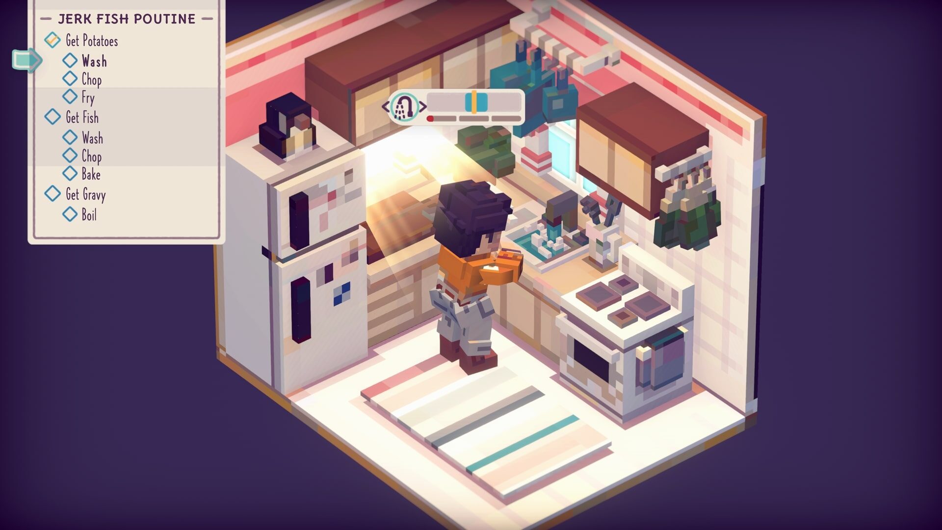 Najwięcej akcji przypisanych będzie do klawiszy A, Y oraz B. Gotując składniki wyjmiemy klikając A, przygotowywać będziemy używając B w konkretny sposób, a parę mechanizmów będzie od nas wymagało poruszania analogiem. Łowiąc ryby używać będziemy triggerów. Sporo z klawiszy i ruchów trzeba wyczaić samemu, choć w odpowiednich momentach gry pojawią się mini-tutoriale lub wskazówki. Gra nie obsługuje polskiej wersji językowej, więc musicie wypatrywać napisów typu „Hold” czy „Tap”, które pojawią się przy wskazówkach.