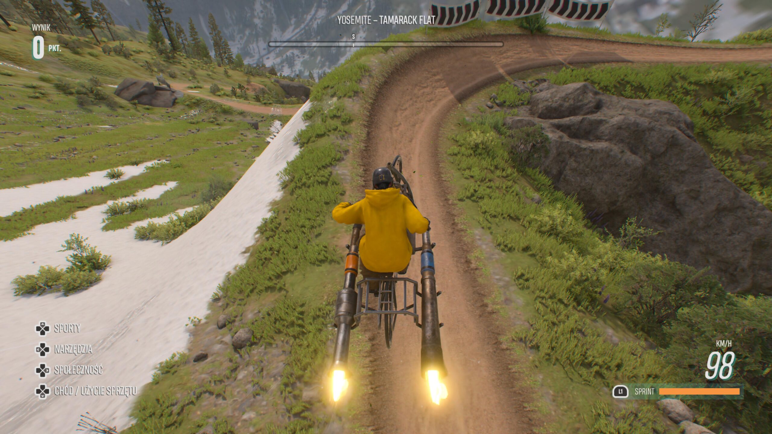 Najnowsze działo Ubisoftu można określić mianem Forzy Horizon dla fanów sportów ekstremalnych. Bierzemy udział w wielkim festiwalu. Podobnie jak samochody w dziele Microsoftu, tak w Riders Republic wszelkie rowery, narty, czy kombinezony do latania mają swoją ocenę oraz liczbę osiągów. Wraz z kolejnymi zakończonymi zawodami zdobywamy coraz lepszy sprzęt. Do tego oczywiście odblokujemy całą masę przedmiotów kosmetycznych lub emotek dla naszej postaci. Warto dodać, że ten ogromny plac zabaw oparty na amerykańskich parkach narodowych możemy przemierzać nie tylko za pomocą nart, czy roweru. Do eksploracji mogą posłużyć nam bowiem również takie pojazdy jak skuter śnieżny, paralotnia, czy rower…z silnikiem odrzutowym. W dowolnej chwili możemy się przełączać między nimi.