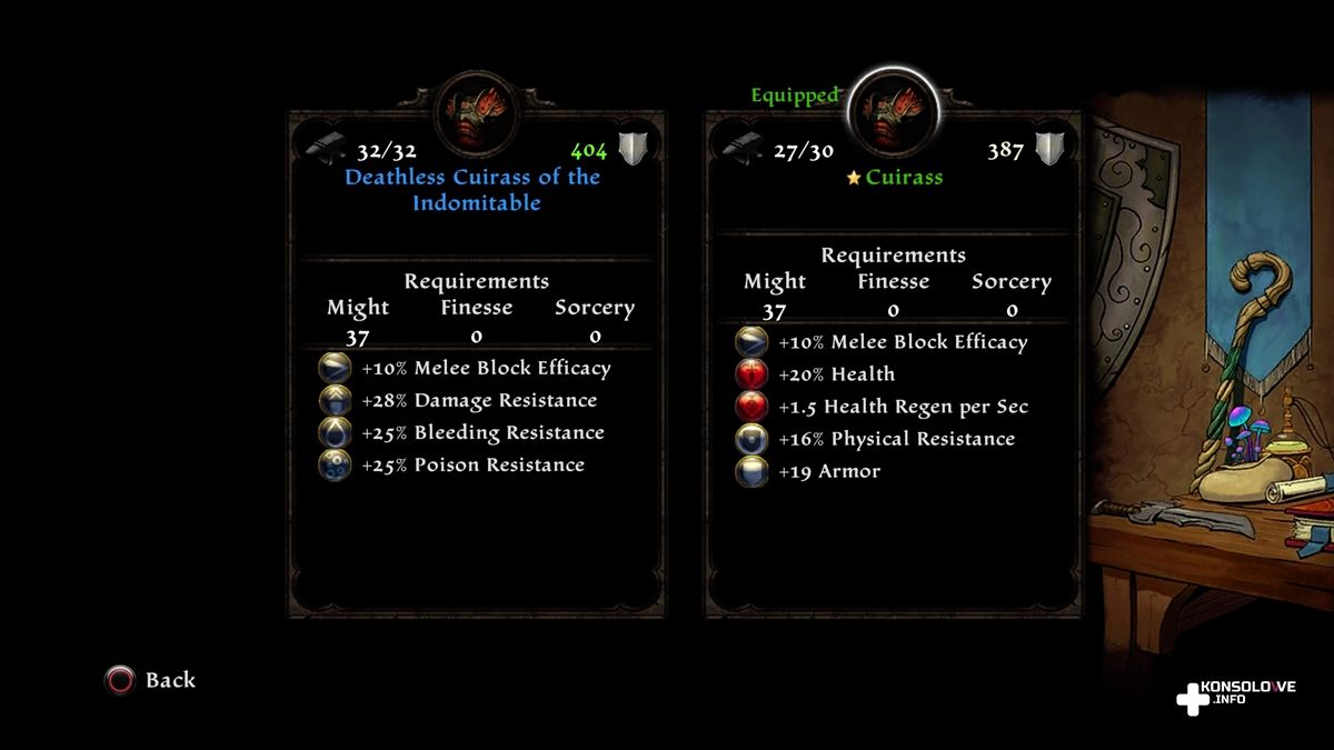Jedną z zapowiadanych nowości, jakie miały się pojawić w Fatesworn były kolejne zestawy wyposażenia. Twórcy zdecydowanie wywiązali się ze swych obietnic, dzięki czemu jest na co wydawać ciężko gromadzone pieniądze i surowce. Czeka na nas wiele nowych zbroi i oręża, z pewnością każdy znajdzie coś dla siebie. Warto zaznaczyć, że koszt nowego wyposażenia jest niemały. Decydując się na zakupienie go od handlarzy, nierzadko na porządny napierśnik musimy wydać 200,000, a nawet ponad dwukrotność tej kwoty. Na szczęście parametry zapewniane przez nowe wyposażenie są jak najbardziej warte swej ceny. Nierzadko znacznie przewyższają one sprzęt, jaki gromadzimy w dotychczas odwiedzanych obszarach.