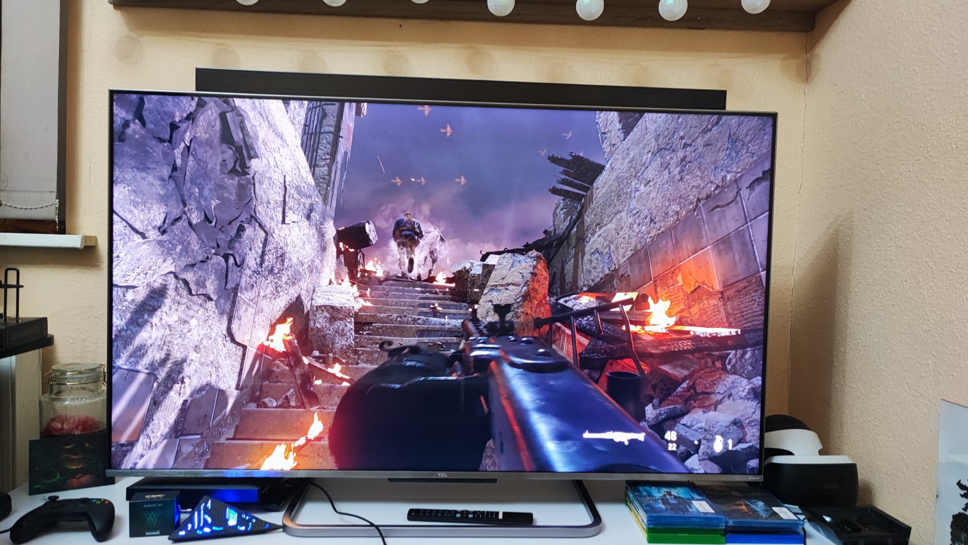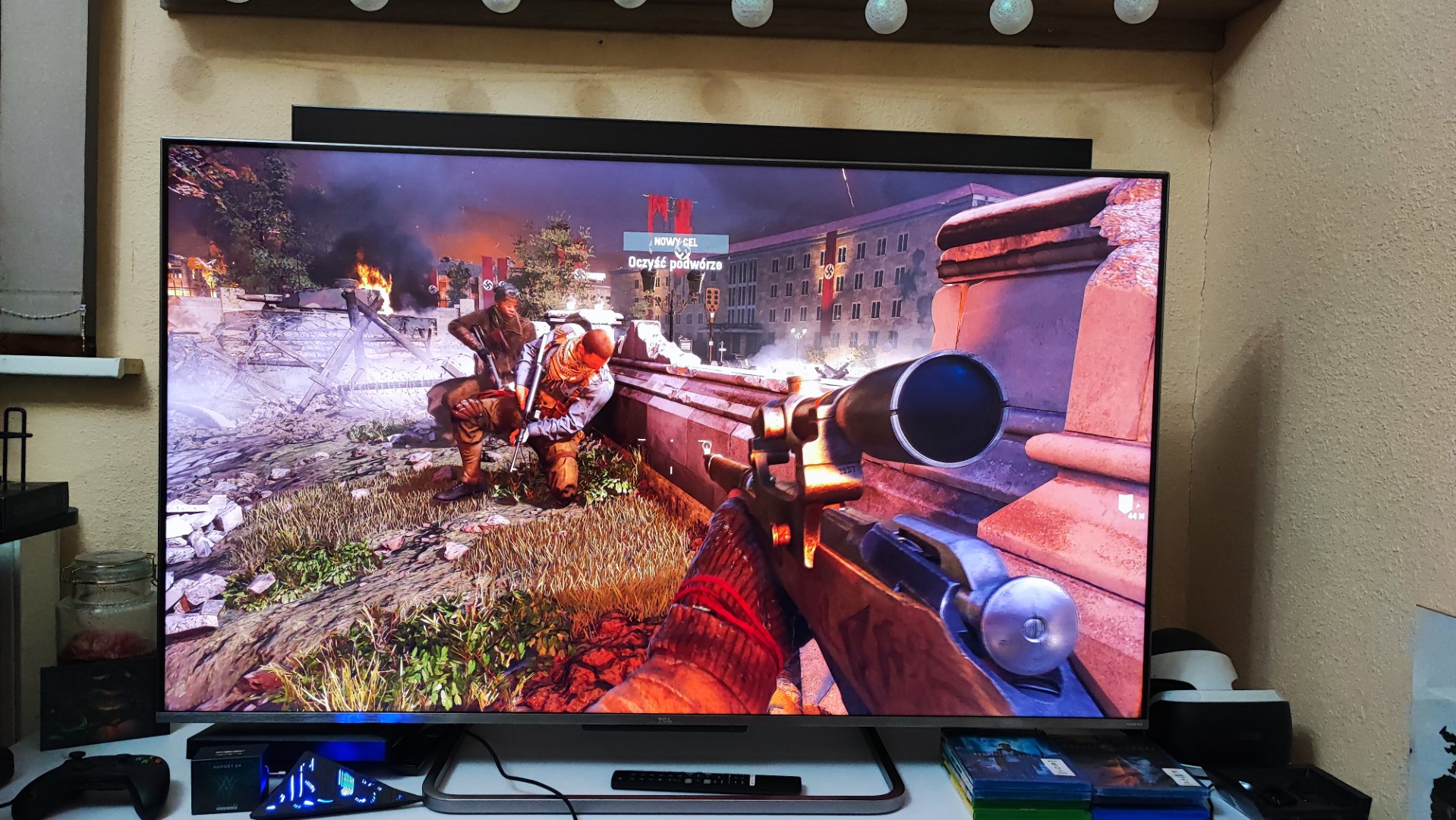 „Jakie to wymagania?” – zapytacie? Oczywiście ekran 4K wykonany w technologi QLED (kropka kwantowa) z HDR10 oraz Dolby Vision. Dzięki temu przechodzenie kampanii dostarczyło kinowych wrażeń. Matryca, która odświeża się z prędkością 120 Hz sprawi, że rozgrywanie meczów w trybie wieloosobowym będzie ultra płynne, jak nigdy wcześniej. Oprócz wysokiej wartości odświeżania ekranu potrzebujemy także niskich opóźnień, a te zapewnia ALLM (Auto Low Latency Mode). Zadaniem tej funkcji jest uruchomienie telewizora z trybem gra wraz z niskim input lagiem na poziomie 15 ms. Inną ważną funkcją dla graczy jest Variable Refresh Rate (VRR), czyli zmienna częstotliwość odświeżania. Dzięki niej gracze nie powinni odczuć spadków klatek, jeżeli tytuł przykładowo ma problem z utrzymaniem stabilnych 60 FPS-ów.