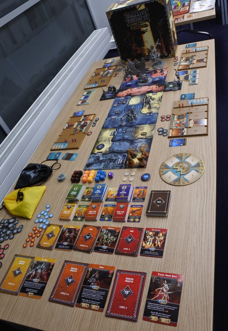 Rasowy dungeon crawler z pięknymi figurkami, setkami kart, dziesiątkami żetonów i komponentów. Jej obecna ocena na BGG nie robi większego wrażenia (6.5), choć miały mieć na nią wpływ nieporozumienia wynikające z dystrybucji po kampanii na serwisie Kickstarter. W grze może bawić się od jednego do sześciu graczy. Jej twórcą jest Alex Olteau, autor recenzowanej przeze mnie God of War: Gra karciana. Massive Darkness 2 ulepsza poprzednią część z 2017 roku. Każda z dostępnych klas ma inne mechaniki, co czyni grę asymetryczną i inną za każdym razem, w zależności od wybranych bohaterów. Zapowiada się więc bardzo regrywalny tytuł!