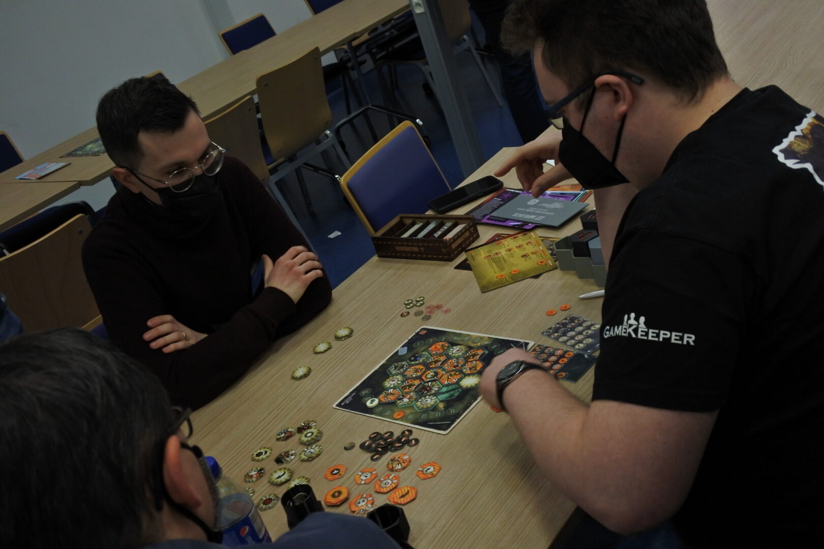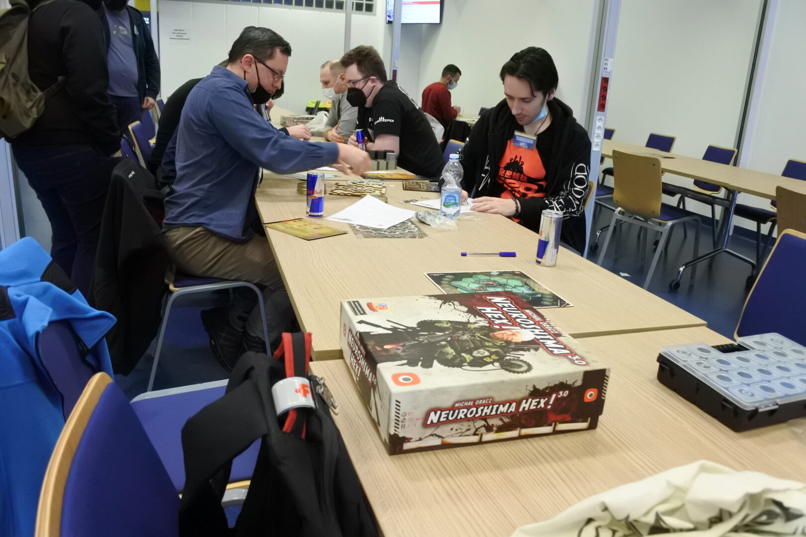 Nie może być imprezy Portal Games bez turnieju w Neuroshimę Hex. Jeszcze parę lat temu, udałbym się na PortalCon jako zawodnik, tym razem miałem jednak inne obowiązki. Mimo to nie mogło mnie zabraknąć przy stołach, na których zmagali się uczestnicy turnieju. W 2022 Mistrzem został Jakub Pander, za co należą mu się wielkie gratulacje!