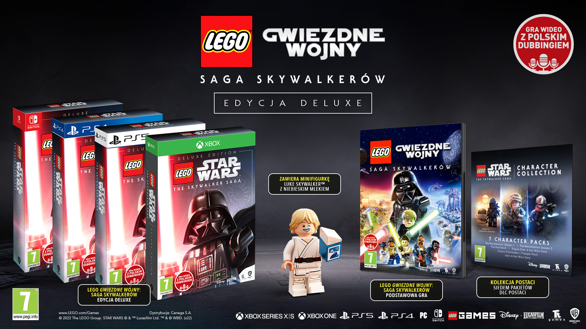 Dostępna jest również pudełkowa Edycja Deluxe gry LEGO Star Wars: Saga Skywalkerów, która zawiera: