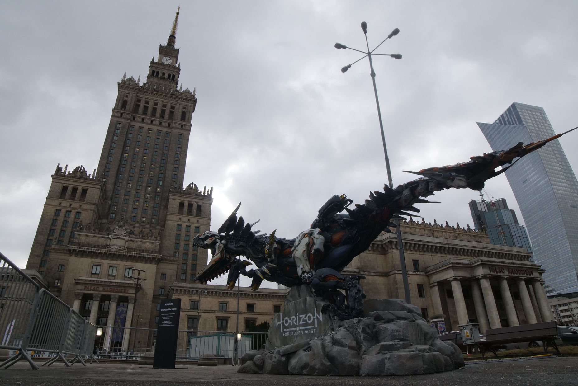 Pod Pałacem Kultury i Nauki w Warszawie pojawił się wysoki na ponad 3 metry Chyżoszpon z Horizon Forbidden West. Czy odważysz się podejść?