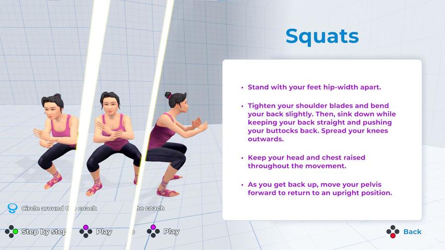 Let’s Get Fit oferuje gotowe treningi, a także możliwość stworzenia nieskończonej liczby własnych, niestandardowych układów. Gracze mogą wybierać spośród szerokiej gamy ćwiczeń, od łagodnej gimnastyki po treningi o wysokiej intensywności, wymagające wysiłku całego ciała, lub skupiające się na określonych grupach mięśni.