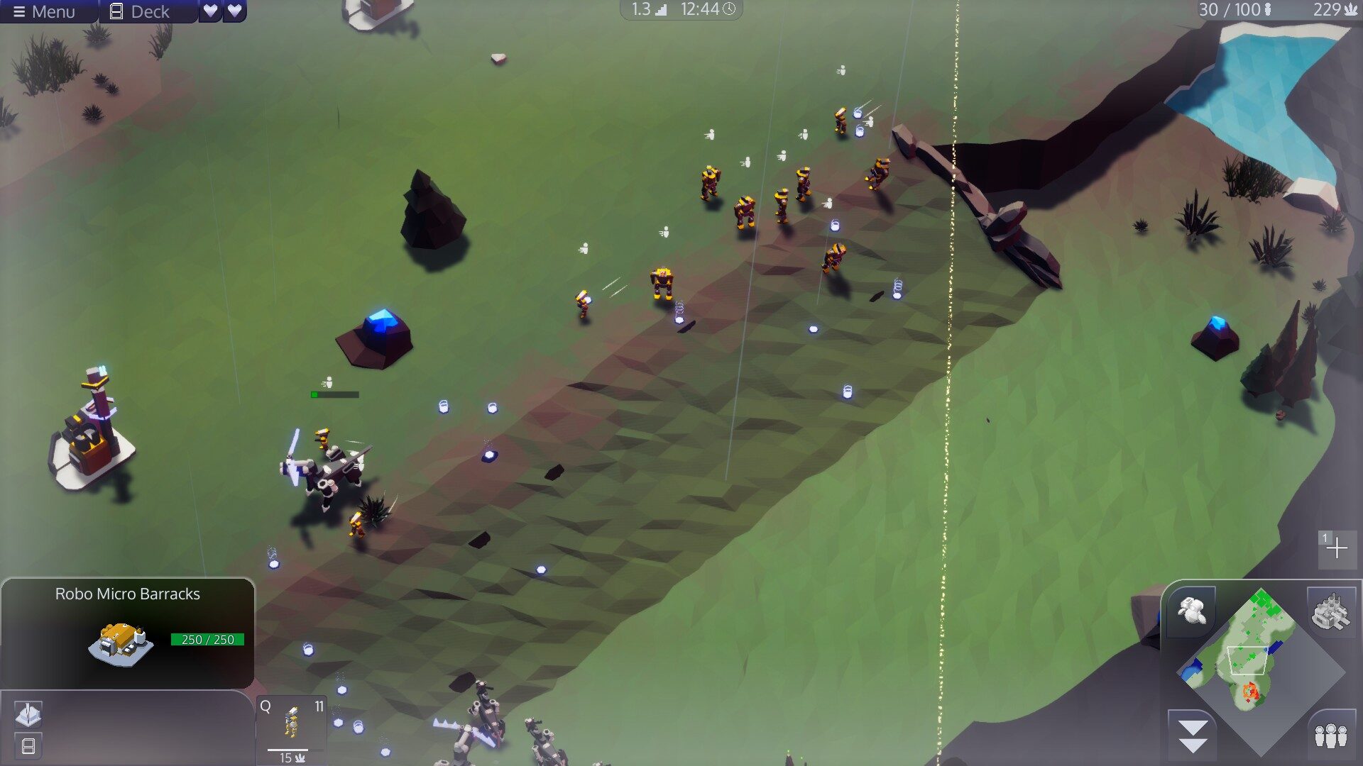 Budujemy fabryki, one produkują jednostki, które wreszcie wysyłamy do walki, gdzie mogą wykorzystać swoje specjalne umiejętności. Może to być wystrzelenie rakiety osłabiającej wrogów czy wskrzeszenie poległych robotów jako zombie. Trudno byłoby to zrobić efektywnie bez spowolnienia czasu (do 10% szybkości). Łapałem się na tym, że większość rozgrywki właściwie spędzałem w tym trybie. Stąd wniosek, że obsługa gry na padzie w normalnej prędkości byłaby bardzo mało efektywna. Ciekaw jestem, czy zmianie ulegnie bazowa prędkość rozgrywki.