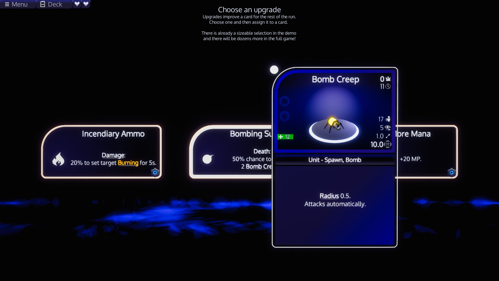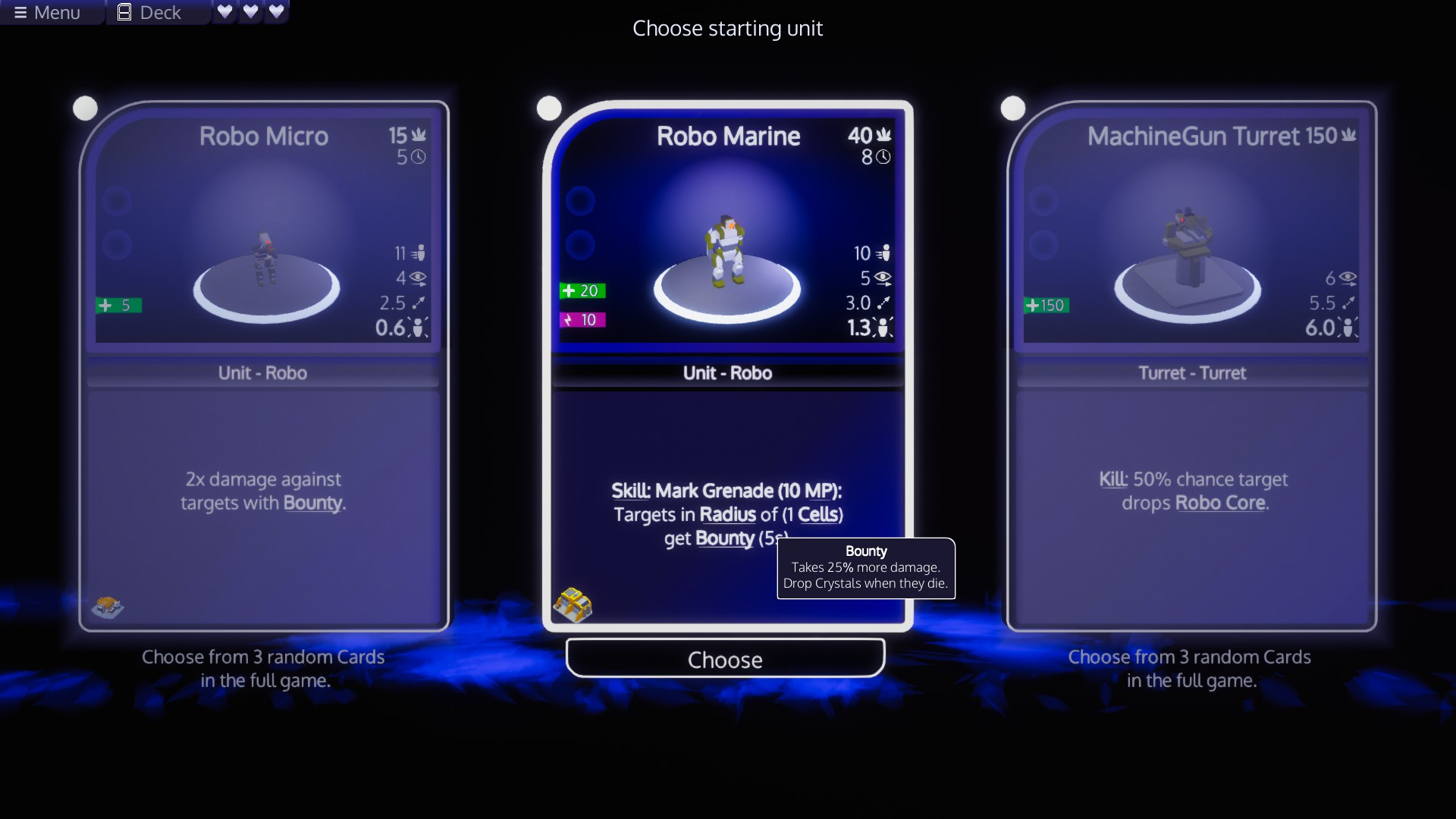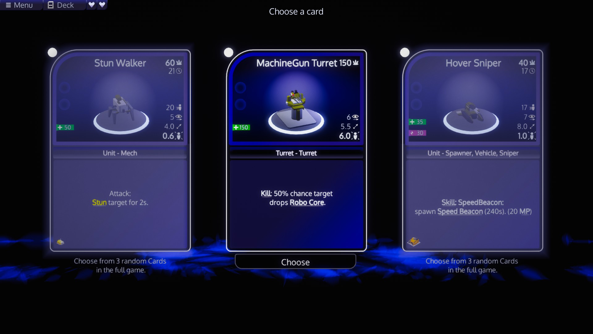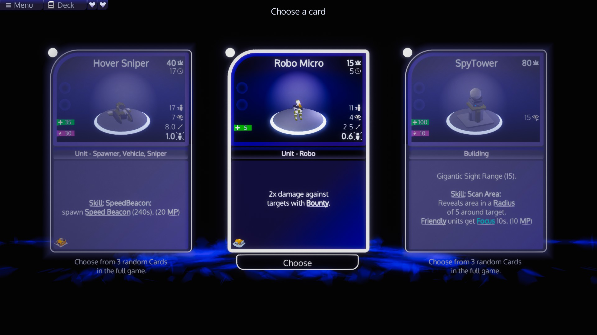 Wspomniałem, że przy odpaleniu Rogue Command wróciły wspomnienia. Deweloperzy Feneq nie osiadają jednak na laurach i dodają elementy roguelike i deck-buildingu do całej mikstury. Jednym ze smaczków jest to, że będziemy się bić na proceduralnie generowanych polach bitew. Kolejnym jest system kart, które dobierzemy pomiędzy rozgrywkami. W wersji demonstracyjnej nie można było wybrać kart produkcyjnych poza tymi wskazanymi przez twórców, ale można było już zaszaleć, jeśli chodzi o upgrady i hacki. Są to dodatki, które możemy dołączyć do już wybranych kart głównych. Na przykład wybrana jednostka będzie miała szanse na wskrzeszenie dwóch wybuchających robotów przy śmierci albo dodatkowe działka pojawiające się przy budowanej strukturze. To właśnie te decyzje, widoczne później na polu bitwy, dawały najwięcej satysfakcji.
