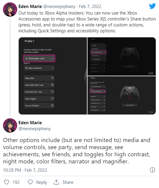 Uczestnicy programu Insider mogą już testować dowolnie programowalny przycisk Share na nowych kontrolerach do konsol Xbox.