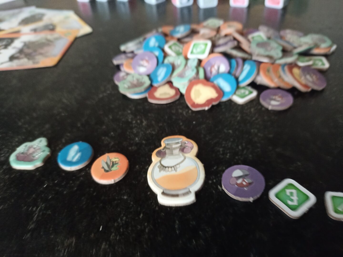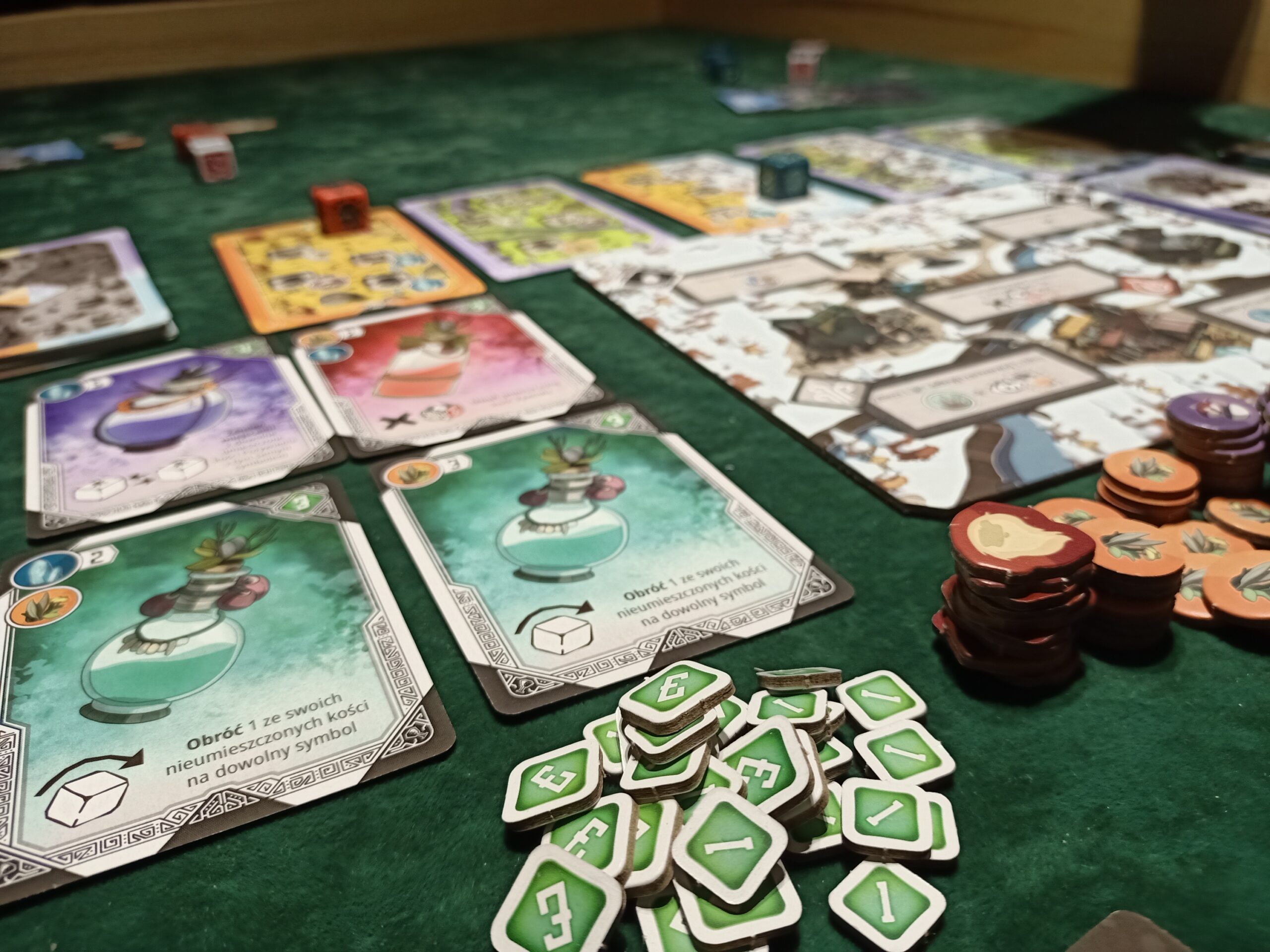 Wspomniane wcześniej eliksiry, pozwalają kontrolować kości. Może to odnosić się do naszych kości, w postaci przerzutu, a nawet zmianę na wybrany symbol na kostce. Równie dobrze mogą jednak przesuwać kości innych graczy, a nawet usuwać je do końca rundy.