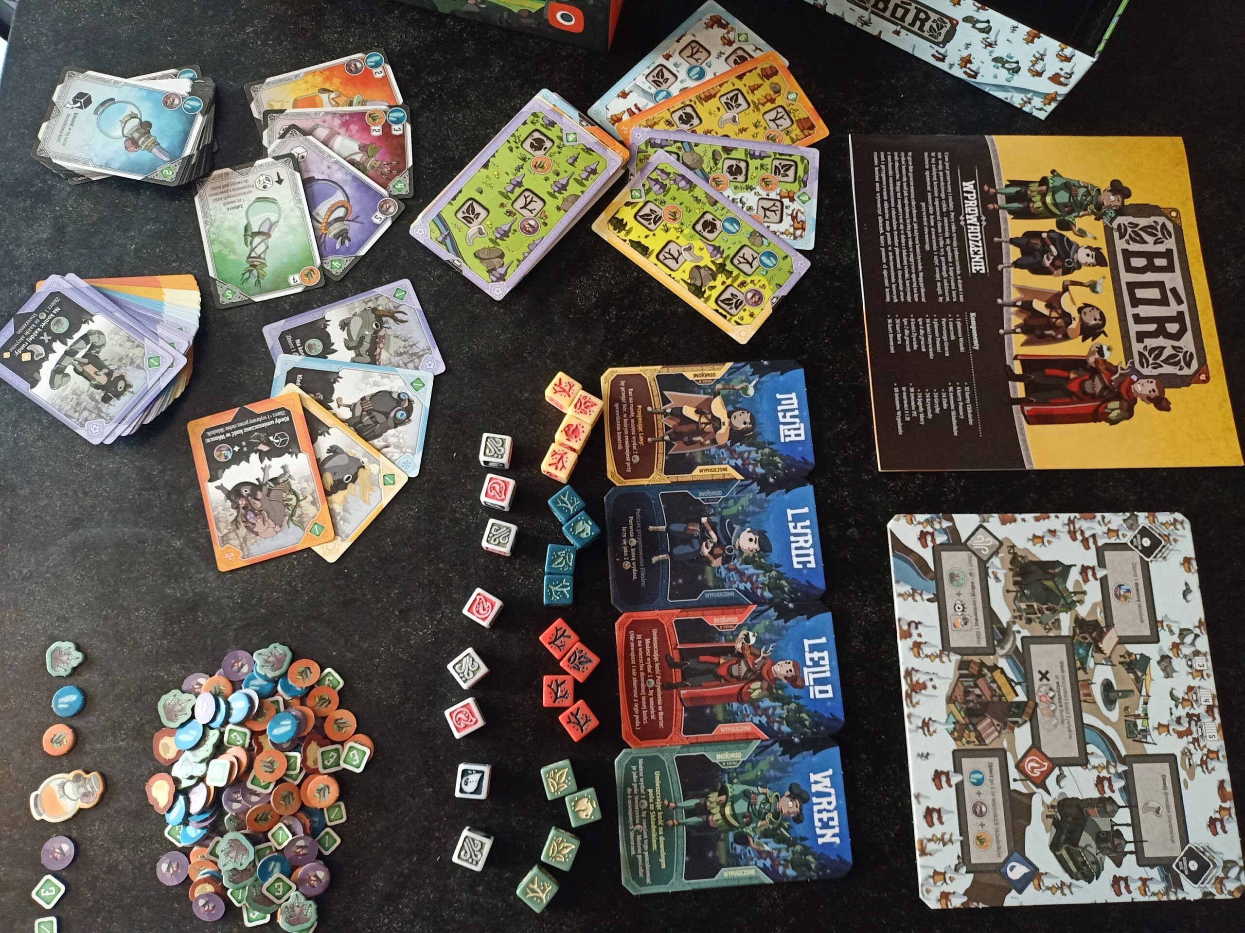 Na 19 stron zasad nie miałem wielu problemów ze zrozumieniem myśli przewodniej gry. Niepełna godzina spokojnej lektury wystarczyła na przyswojenie zasad i to w ten sposób… że wytłumaczenie ich innym graczom zajmowało mi około 10 minut! Tradycyjnie, możecie zapoznać się z instrukcją w tym miejscu. Ważne, że do rozgrywki dostajemy karty pomocy gracza, które pomagają nam podczas przygody z grą. Szybko jednak zaczynamy płynąć z duchem rozgrywki i ich więcej nie potrzebujemy. Świadczy to o bardzo dobrych, logicznych zasadach Boru. Oczywiście, zdarza się wracać do instrukcji, szczególnie na początku gry, ale w tej produkcji jest tego naprawdę mało! Nie znaczy to wcale, że gra jest liniowa, prosta czy nudna. Oj nic z tych rzeczy! Ale o tym szerzej w kolejnym akapicie poświęconym rozgrywce.