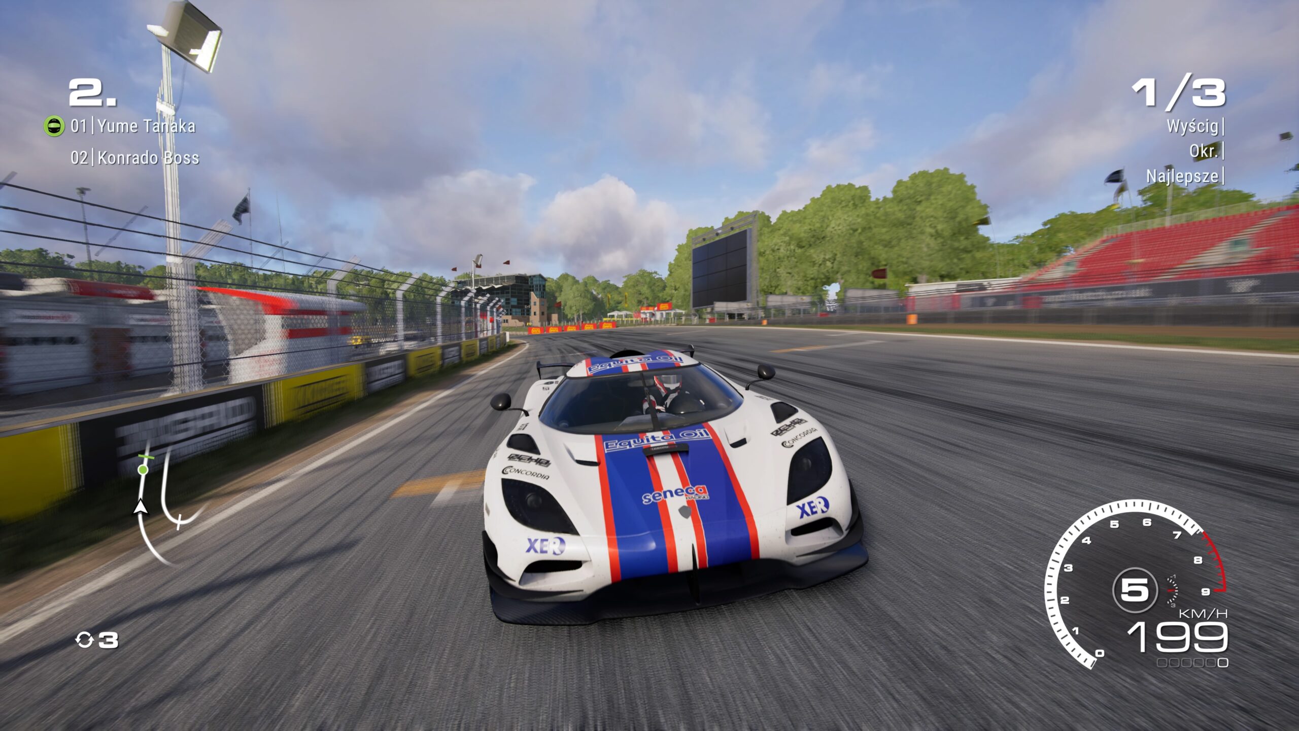 Co ciekawe, nasz drugi kierowca ma swoje małe drzewko rozwoju. Jest ono podzielone na trzy kolumny: strategię, współpracę oraz wiedzę. W każdej z nich mamy do wykupienia za zdobyte kredyty po 9 ulepszeń. W pierwszym drzewku możemy wzmocnić efektowność wykonywanych komend. Dzięki drugiemu możemy natomiast polepszyć jazdę w deszczowych warunkach oraz sprawić, że jego udział w zyskach będzie niższy. Z kolei ostatnia kolumna odpowiada za mniejsze popełnianie błędów, szybsze pokonywanie zakrętów oraz częstsze trafianie w bramkę doładowania w wyścigach samochodów elektrycznych.