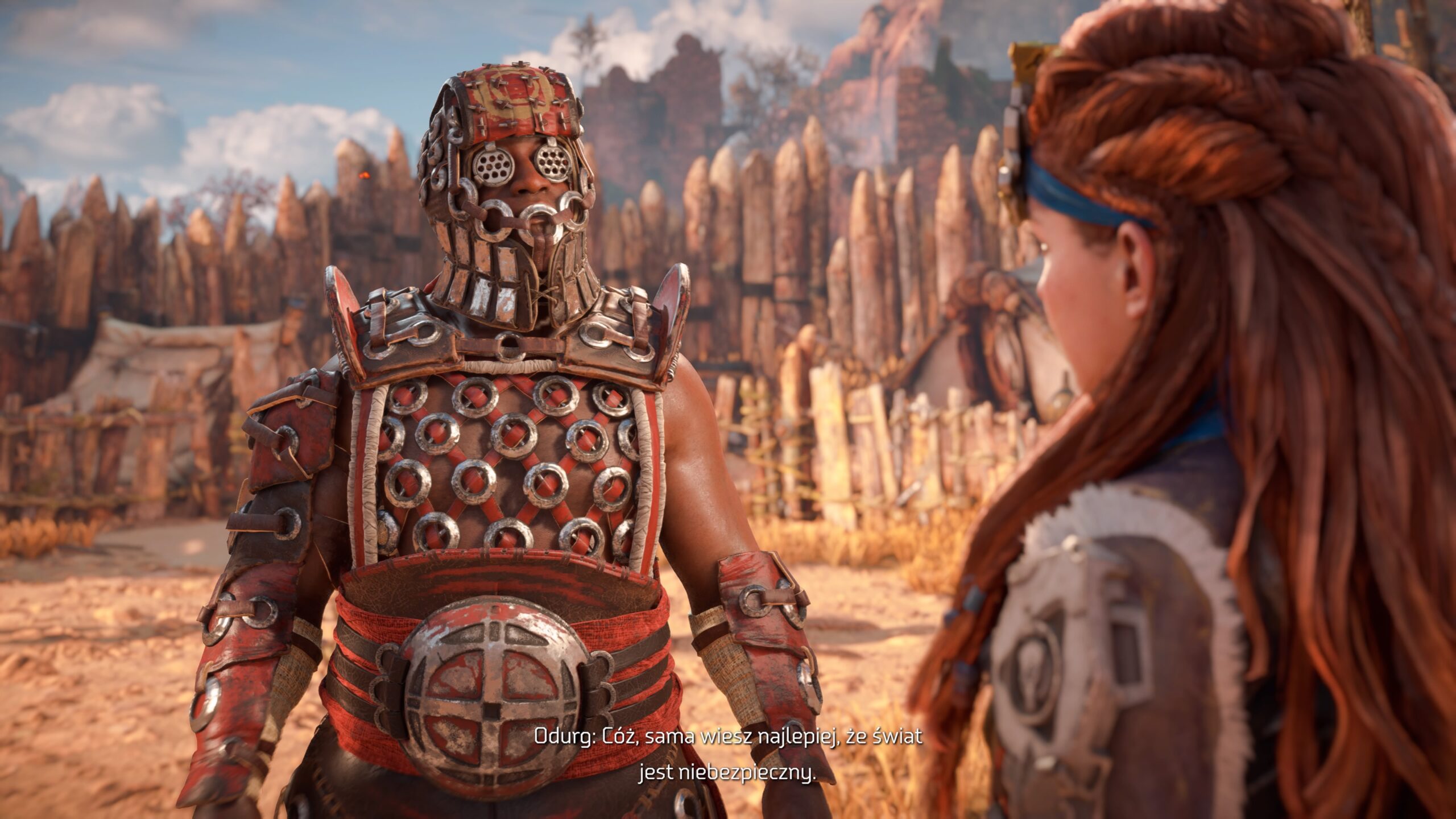 Warto wspomnieć, że misje poboczne są niezwykle wciągające, niczym te w Wiedźminie 3. Oczywiście tyczą się one głównie polowania na maszyny, zbierania z nich surowców, czy ratowania lub odszukania zaginionych ludzi. Jednak za każdym zadaniem – w odróżnieniu od pierwszej części – czai się świetna historia, ciekawe postaci i bardzo dobrze poprowadzone dialogi. Tutaj warto dodać, że polska wersja językowa, jak zawsze u SIE Poland, stoi na wysokim poziomie. Przetłumaczone jest dosłownie wszystko, nawet najmniejsza znajdźka z nagraniem detah metalu, który wykonują polskie aktorki dubbingowe. Co ważne, w ustawieniach gry możemy w końcu wybrać osobno wersję językową dla napisów, jak i dialogów. Stąd też, kiedy spotkałem w grze Carrie-Anne Moss, to od razu przełączyłem się na oryginalny dubbing, aby posłuchać Trinity z filmowego Matrixa.