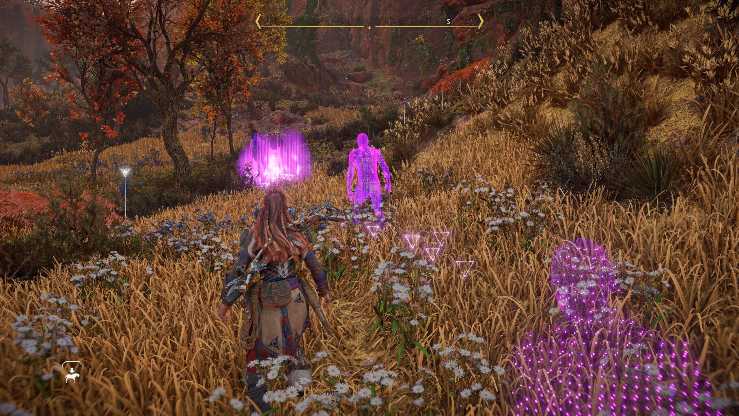 Pozostając jeszcze na chwilę przy walce, warto wspomnieć, w jaki sposób holenderski deweloper wykorzystał w Horizon Forbidden West możliwości kontrolera DualSense. Zacznijmy od włóczni, która, jak wspomniałem, służy do otwierania drzwi. Gdy są one trochę rozszerzone, to musimy je na siłę rozsunąć. Naciskamy więc R2 i siłujemy się z mechanizmem kontrolera. Podobnie jest przy otwieraniu zamkniętych skrzyń z bogatą zawartością. Analogicznie jest również przy strzelaniu z łukum – siłujemy się z triggerami, aby napiąć łuk oraz wypuścić strzały. Co prawda, te nowoczesne funkcje fajnie sprawdzają się w początkowych godzinach gry, jednak gdy przychodzi do walki z potężniejszymi maszynami lub absurdalnie silnym ludzkim bossem, to jednak te bajery zaczynają przeszkadzać. Po pierwsze, siłowanie się ze spustami powoduje wolniejsze strzelanie, a po drugie palce szybciej się męczą.