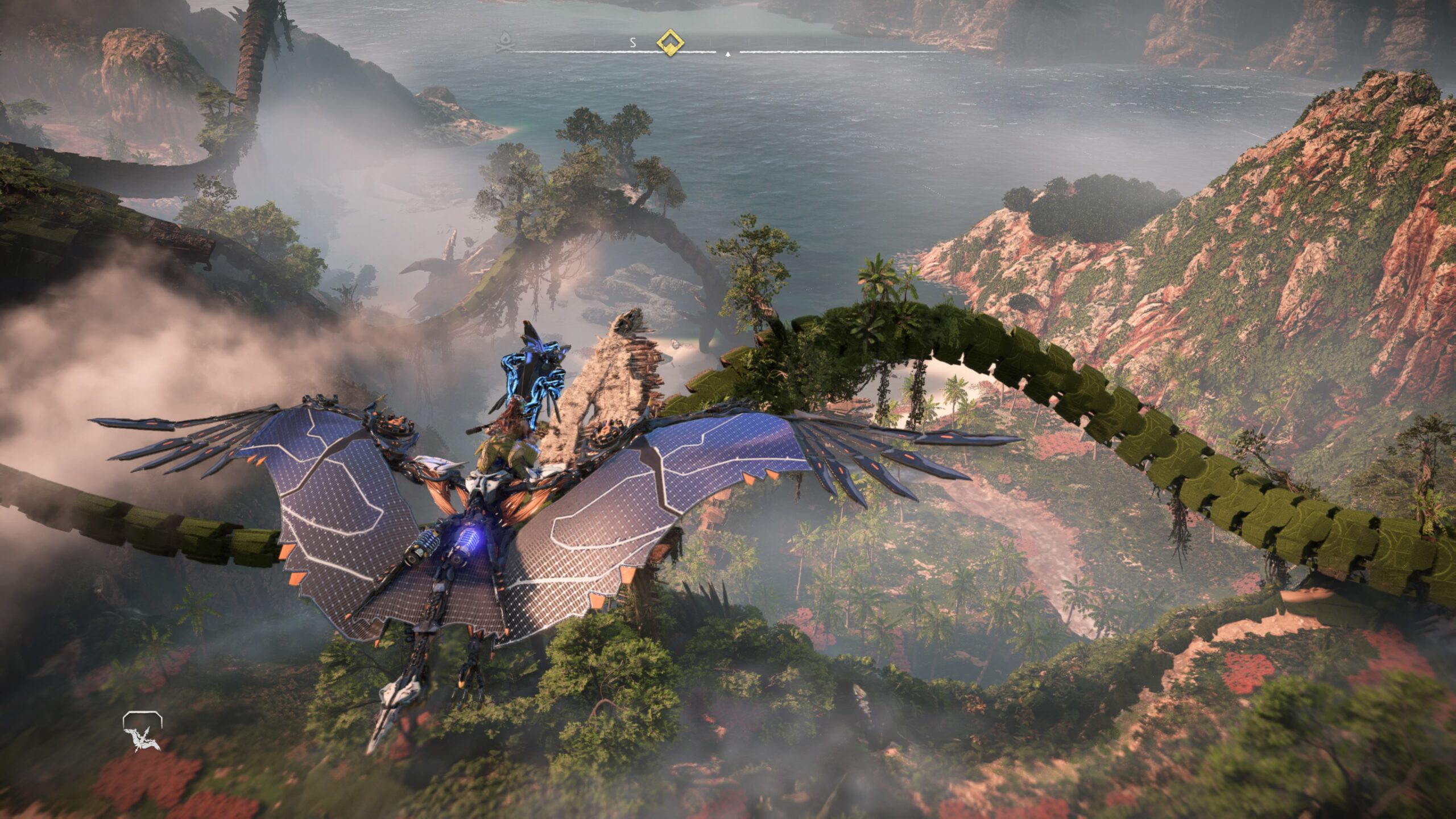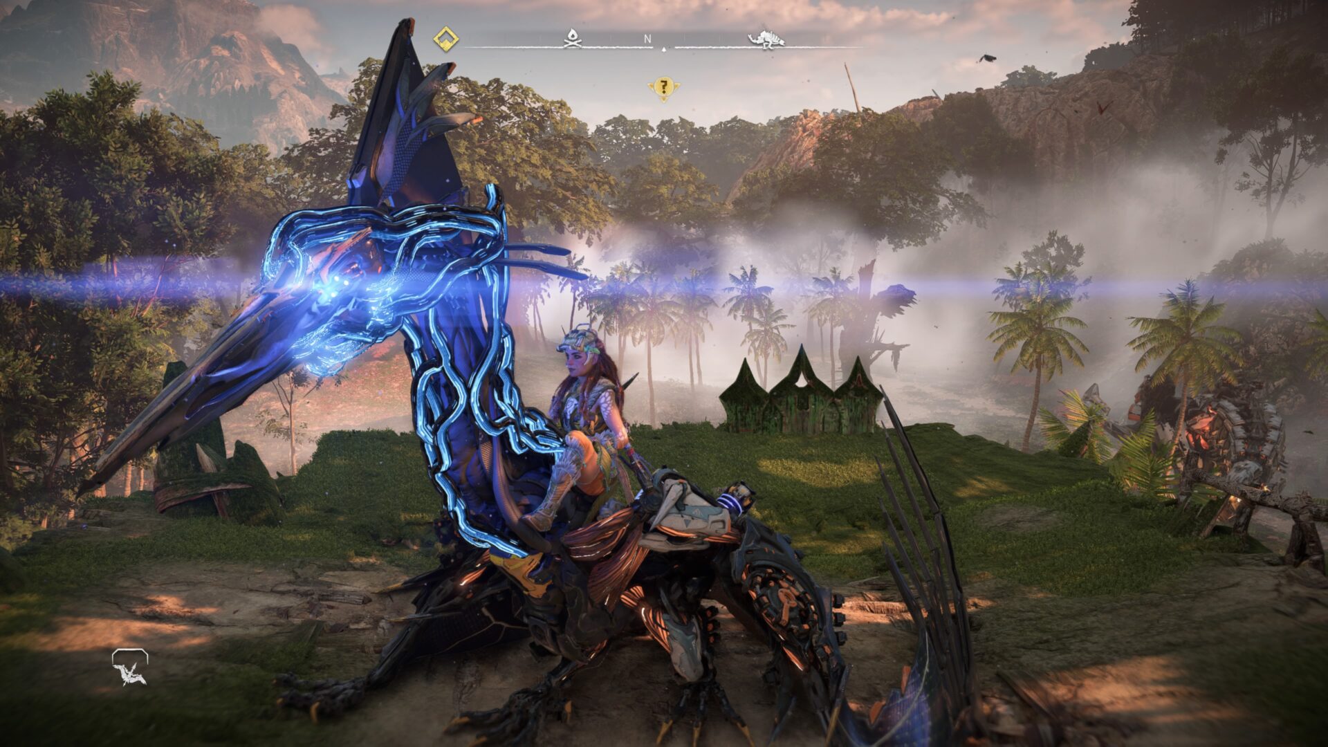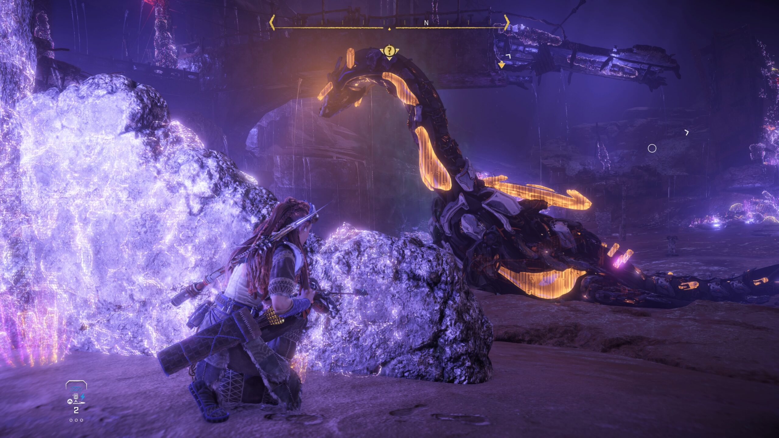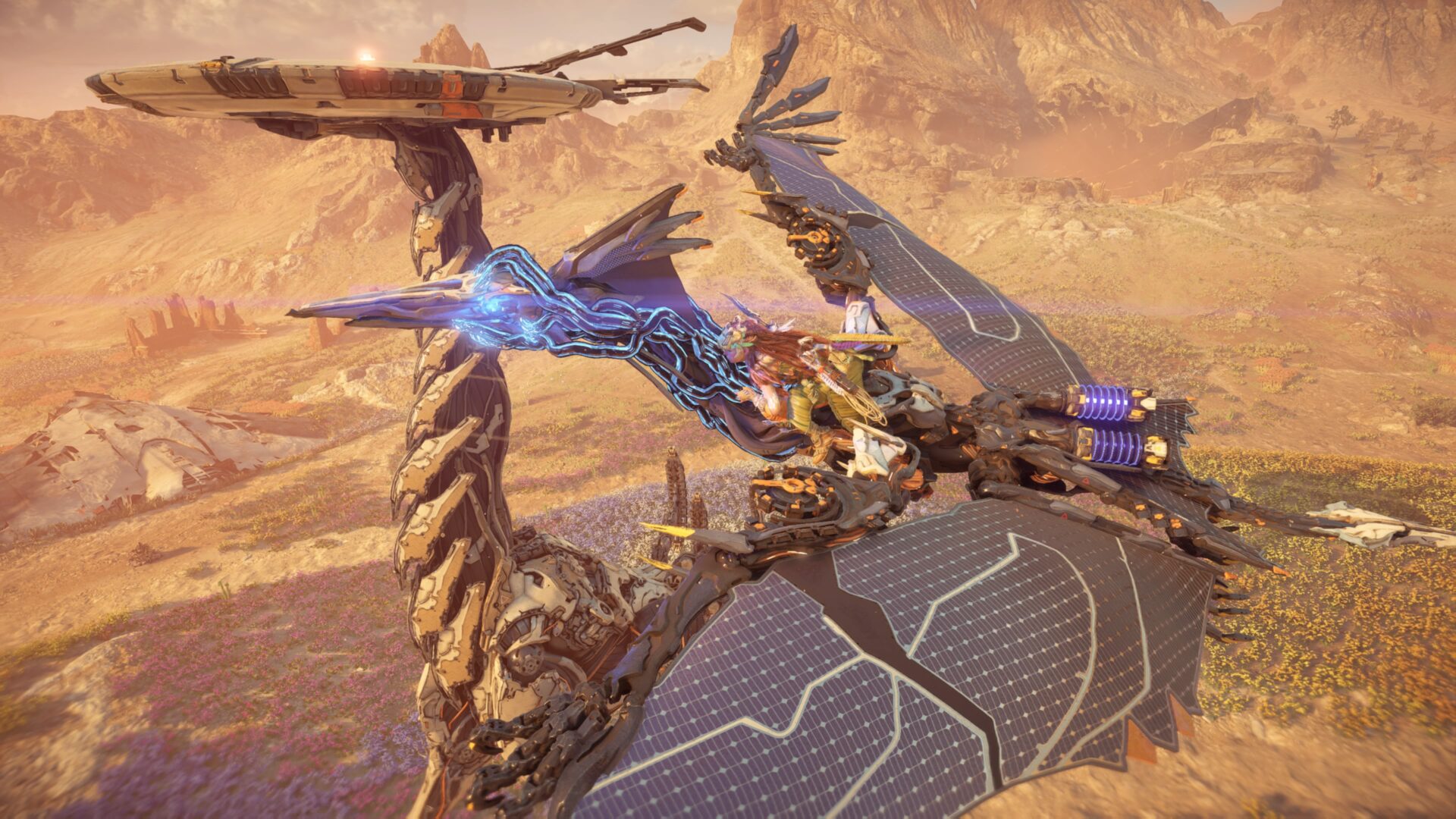 Wspomniałem, że misje poboczne są wciągające niczym te w Wiedźminie 3, ale sam wątek główny również przypominał mi wzorowanie się Holendrów na dziele CDP Red. Aloy po dotarciu na tytułowy zakazany zachód zakłada coś w rodzaju bazy. Wysoko w górach ma swoje nowoczesne “Kaer Morhen”. Nasza baza ewoluuje przez całą rozgrywkę, a co jakiś czas SI, która zarządza tym miejscem odblokowuje nowe pomieszczenia. Te wypełnią starzy przyjaciele z “jedynki” oraz zupełnie nowi sprzymierzeńcy napotkani w trakcie przemierzania zakazanego zachodu. Każdy powrót do bazy po wykonaniu misji głównej skutkuje wieloma nowymi liniami dialogowymi z każdym mieszkańcami bazy. HZD bardzo kulało pod tym względem. Aloy cały czas wędrowała, przez co ciężko było nam się zżyć lub polubić z postaciami pobocznymi. Teraz w końcu czujemy, że nie jesteśmy sami. Mamy bowiem swoją grupkę przyjaciół, z którą za każdym razem chce się rozmawiać.