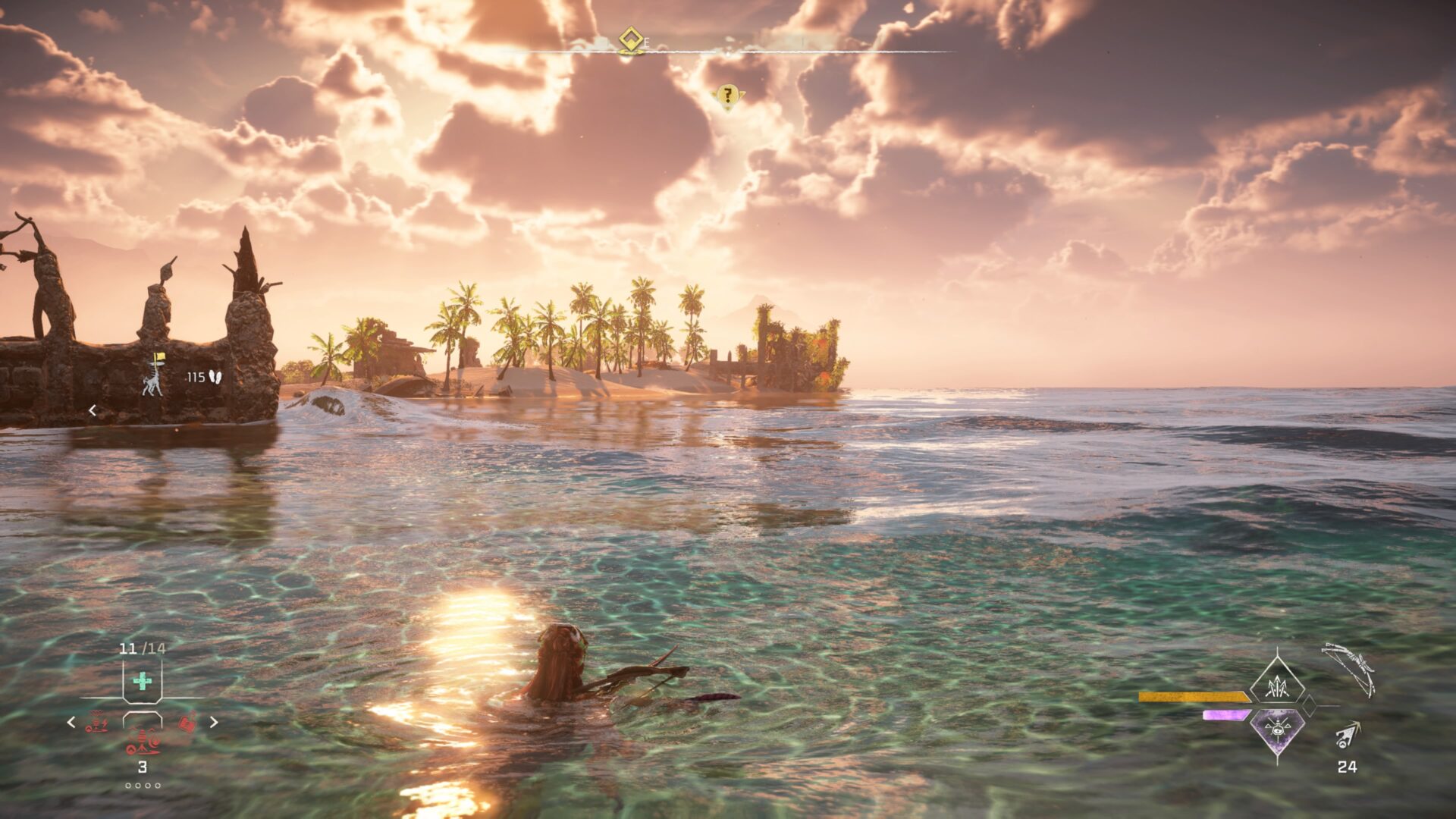 Oczywiście nasz arsenał w nowej części gry został trochę rozbudowany. Do łuków, proc, potykaczy i pułapek doszły bardzo przydane bronie jak automatyczna kusza oraz wyrzutnia dysków. Pierwsza pozwala momentalnie nałożyć na maszynę różne żywioły, jak porażenie, próżnia, czy czystowoda (te ostatnie dwa to nowe żywioły), a druga kapitalnie nadaje się do niszczenia wielu elementów pancerza. Warto wspomnieć, że drzewko rozwoju naszej postaci też przeszło znaczne zmiany. Te podzielono teraz na sześć kategorii (m.in rozwijanie walki w zwarciu i dystansowej, cichych eliminacji, dominacji maszyn, czy rozwoju eliksirów i pułapek), w których wydajemy zdobyte punkty umiejętności. Początkowo ogrom przeraża i ciężko zdecydować, na co wydać pierwsze punkty. Jednak z czasem gracz szybko odkryje swój styl walki, a tym samym będzie odblokowywać najbardziej kluczowe umiejętności. Nie ma opcji resetu zdobytych punktów umiejętności, a przynajmniej ja tego nie znalazłem.