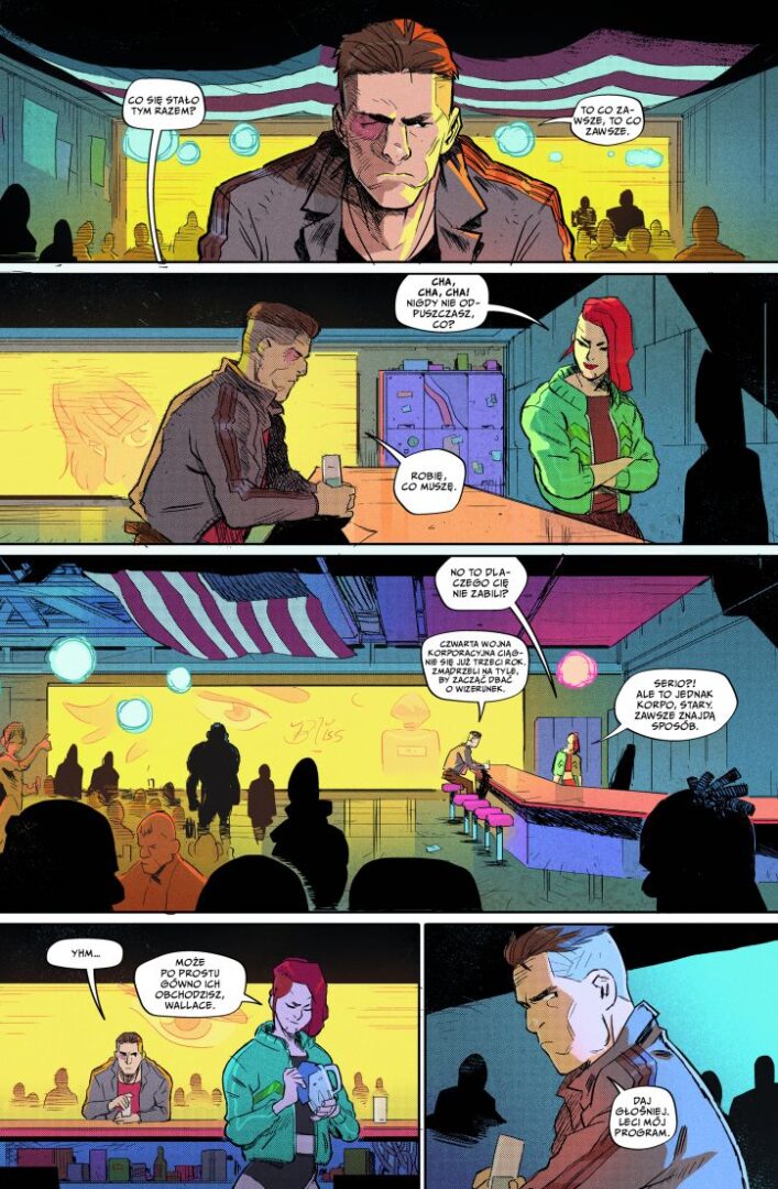 Nie spoilując nikomu poznawania fabuły, mogę oczywiście wyrazić swoją opinię na temat jej jakości. Biorąc pod uwagę tytuł, naturalnie można się spodziewać obecności Arasaki. Rzeczywiście korporacja pojawia się na kartkach komiksu. Nie można jednak stwierdzić, by to ona była tu najważniejsza. W Gdzie jest Johnny? kluczowe jest przedstawienie relacji międzyludzkich i wykazanie tego, jak działa świat miasta Night City. Recenzowany tom jest w mojej ocenie najbardziej zgodny z duchem gry i można odnieść wrażenie, że obserwujemy rozgrywkę z pobocznego wątku. Jest to jednocześnie bardzo wciągająca przygoda, do której z pewnością będę co jakiś czas wracał. Nie brakuje naturalnie odniesień do Johnny’ego Silverhanda. Komiks przedstawia bowiem opowieść dziejącą się stosunkowo niedługo po pamiętnym ataku rockmana na Arasaka Tower. Komiks ten to prawdziwa uczta dla fanów Cyberpunka.