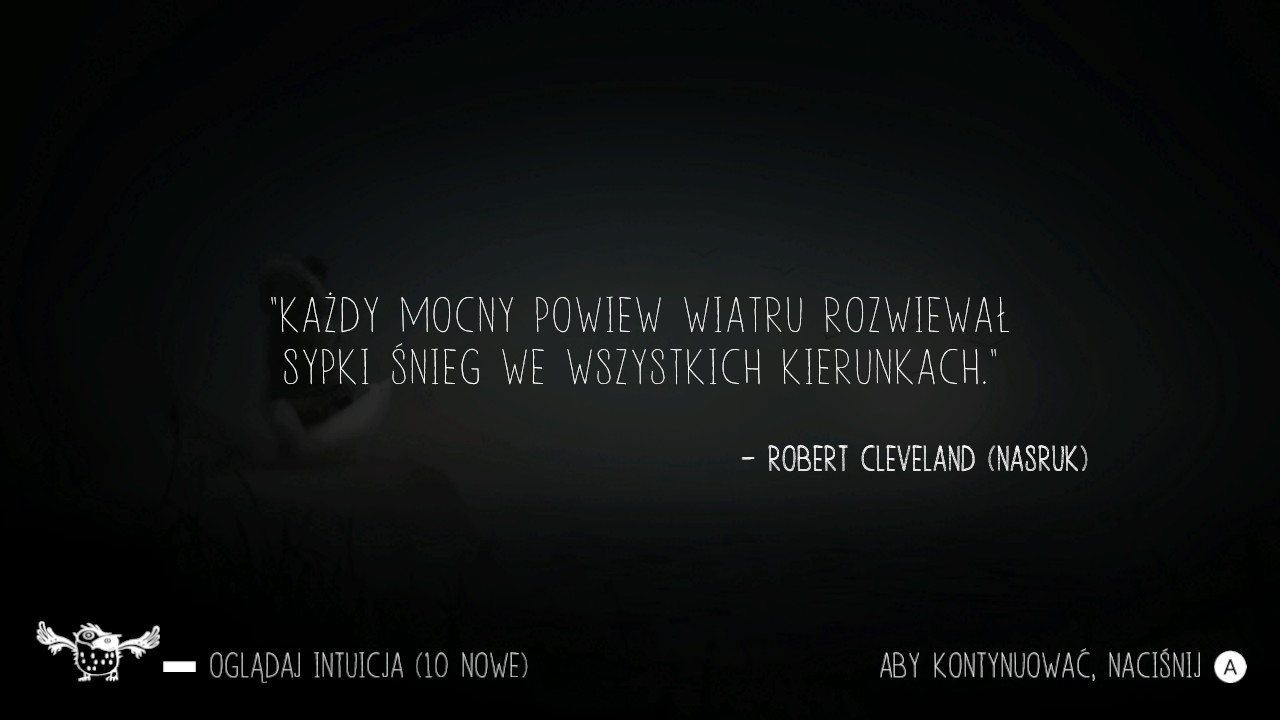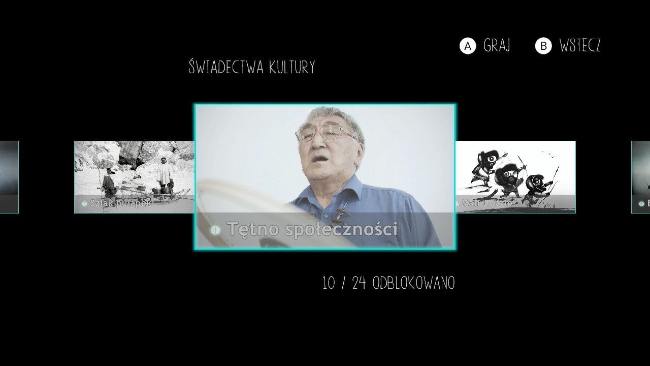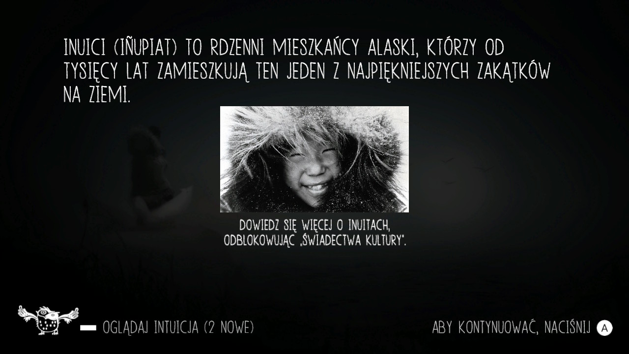 Never Alone: Arctic Collection zostało stworzone we współpracy z rdzennymi mieszkańcami Alaski. Sama fabuła została osadzona w tradycji ludu Inuitów zamieszkującego tereny arktyczne. Jakież było moje zdziwienie, kiedy to zobaczyłam. Po ustawieniu języka na język polski zainteresowała mnie zakładka “Świadectwa kultury”. Okazało się, że każde z nich będziemy odblokowywać w miarę postępów w grze. Nie pozostało mi wtedy nic innego jak rozsiąść się wygodnie na kanapie, nakryć kocykiem i poznać naszych bohaterów.