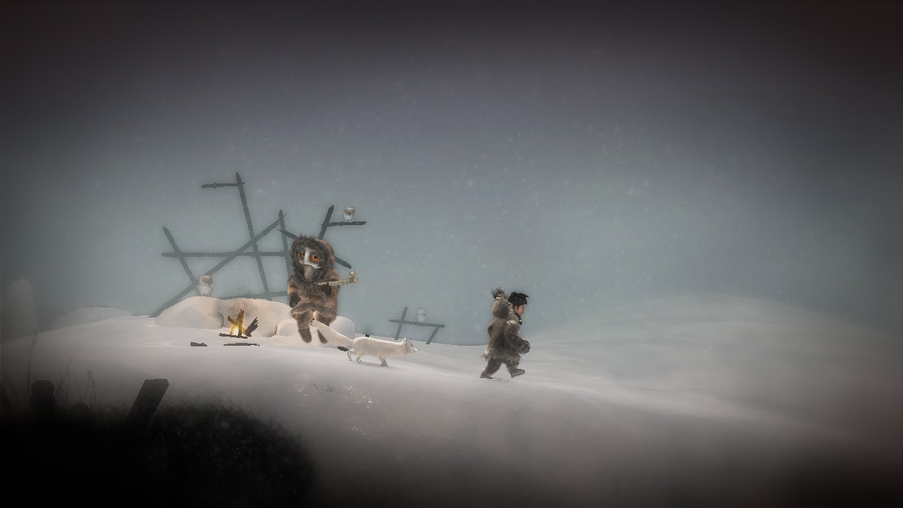 Na samym początku moim zadaniem okazała się ucieczka przed niedźwiedziem. Oczywiście, zanim udało się tego dokonać, kilkukrotnie bohaterka pożegnała się z życiem. Ostatecznie z pomocą sprytnego liska zadanie zostało wykonane i mogłam rozpocząć zabawę. W trakcie rozgrywki dowiadujemy się o możliwości przełączania pomiędzy Nuną (nasza mała bohaterka) a liskiem. Oczywiście można uruchomić tryb kooperacyjny z inną osobą, jednak tym razem w drogę przez śnieżne zamiecie wybrałam się sama. Całe szczęście, że odpowiedni przycisk pozwala bohaterce się położyć i przeczekać wiatr.