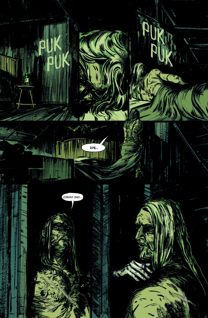 Kreska Vanesy R. Del Rey jest bardzo wyrazista, niektóre kafle wydają się być potraktowane mniej pieczołowicie, z mniej szczegółowymi postaciami. Pomimo że z początku wydało mi się to niedociągnięciem, po krótkiej chwili zobaczyłem, jak bardzo komiks potrafi stworzyć klimat swoim obrazem. To wspomniane przeze mnie wcześniej, poczucie koszmaru wynika nie tylko ze scenariusza. Układ kafli, zwiększanie i zmniejszanie szczegółowości scen, a przede wszystkim dominująca ciemna kolorystyka mocna wyróżniają ten komiks wśród innych mrocznych pozycji.