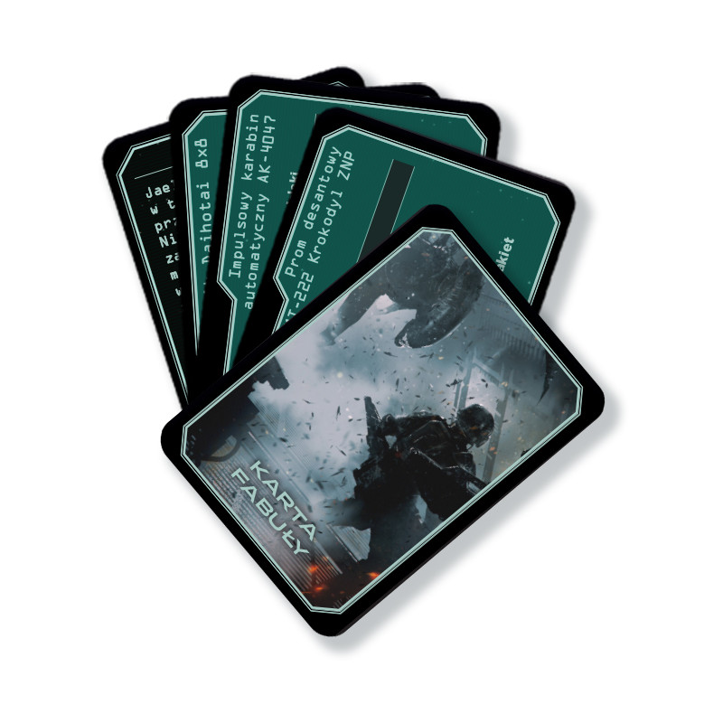 - Specjalne karty, zawierające opisy broni, pojazdów i osobistych celów postaci.