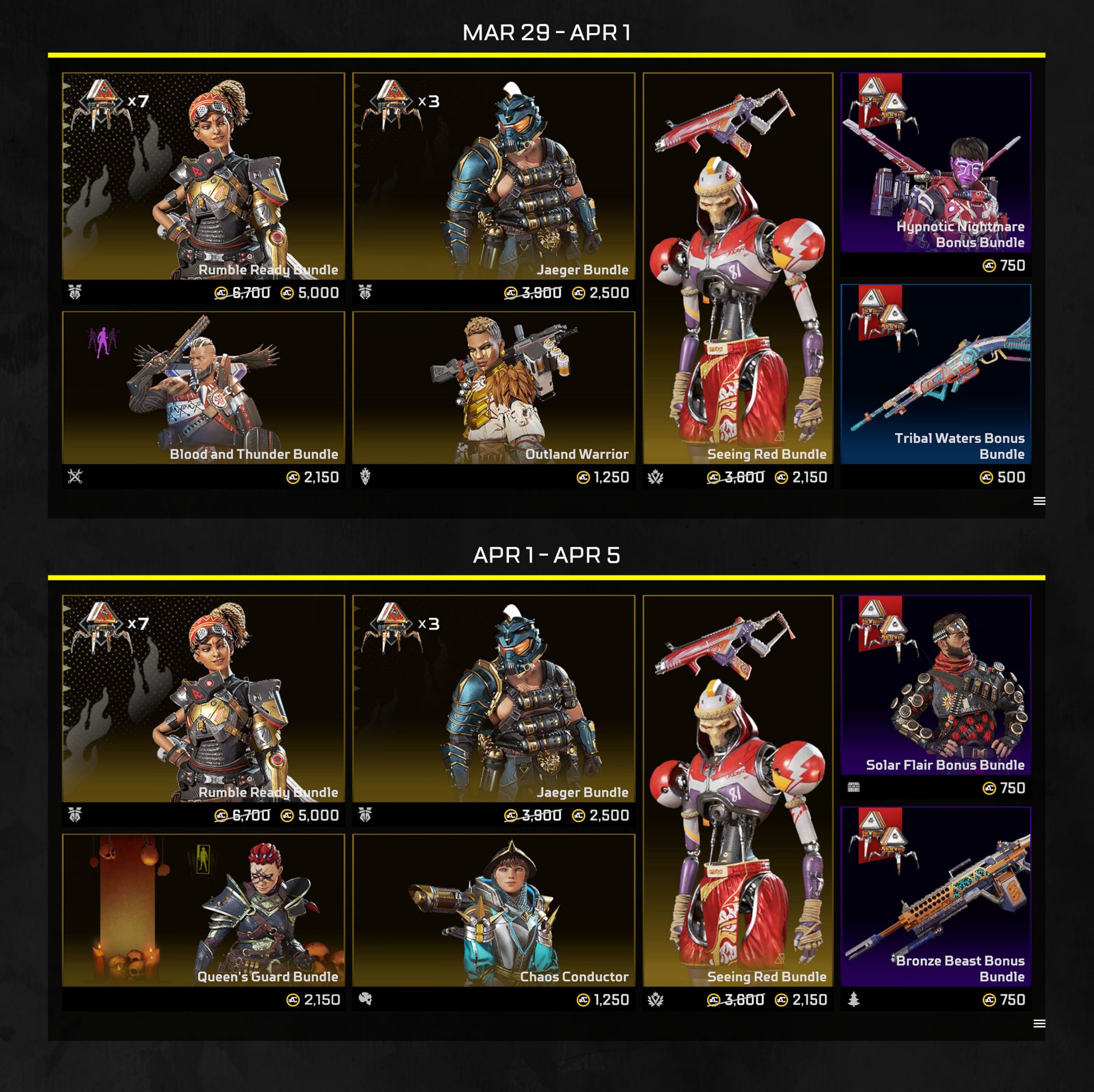 Poniżej możecie zobaczyć część skórek, które dostępne będą w sklepie podczas zbliżających się tygodni. Jak zwykle, skórki z wydarzenia będziecie mogli kupić używając Apex Coins lub wytworzyć z pomocą Crafting Materials. Po zakończeniu wydarzenia Pamiątkę Crypto będzie można kupić za Heirloom Shards.