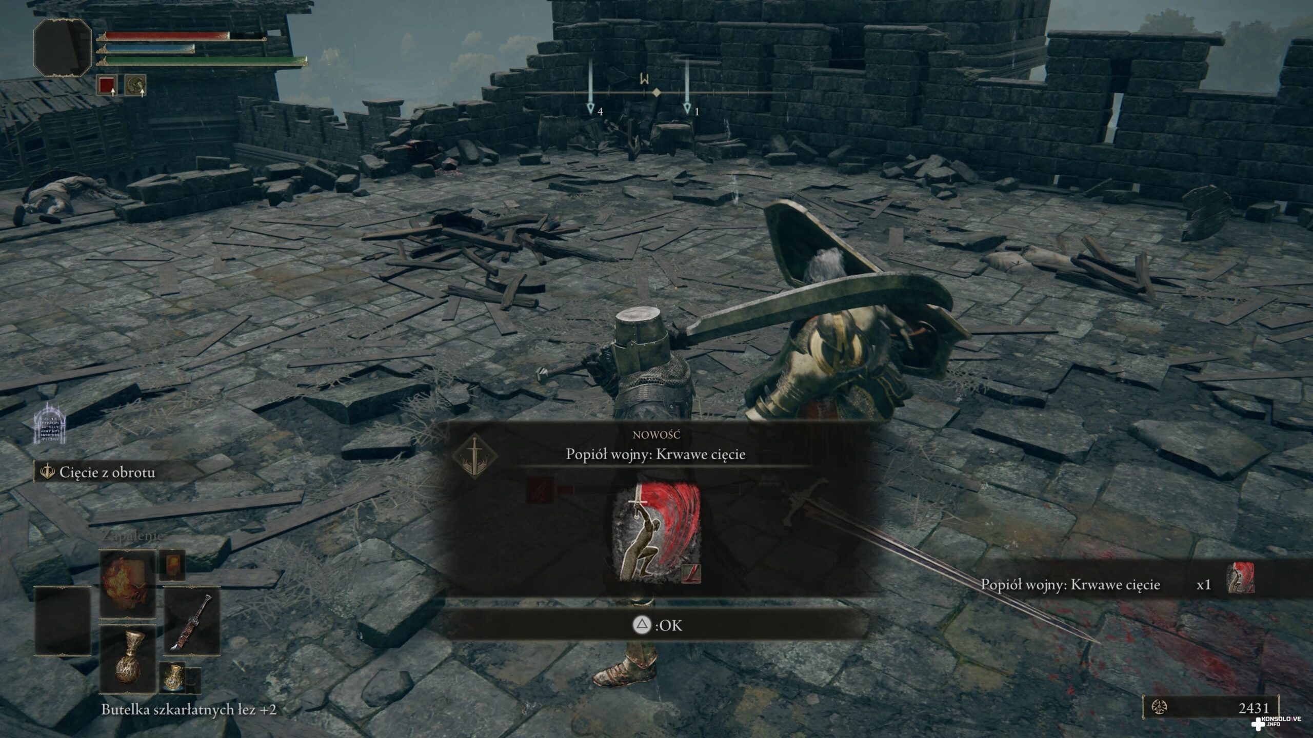 Naturalnie gra RPG nie może obejść się bez różnego rodzaju przedmiotów użytkowych. Nie inaczej jest w przypadku najnowszego dzieła FromSoftware. Ziemie Pomiędzy oferują mnóstwo nagród za eksplorację. I tak zbierając nasiona ze złotych drzew (oraz łzy pamięci), możemy zwiększyć swoje ładunki mikstur, czy też ich moc. Eliksiry dzielą się na 3 rodzaje. Podstawowe to eliksir szkarłatnych łez oraz eliksir modrych łez. Można to w wolnym tłumaczeniu zamienić na napój leczniczy (czy też estusa – fani Dark Souls wiedzą, o co chodzi) oraz na uzupełnienie energii magicznej – znanej też jako mana. Jak już wspomniałem, możemy też zwiększać ilość ładunków. Oznacza to po prostu zwiększoną maksymalną sumę butelek obu rodzajów na naszym wyposażeniem. Istotną mechaniką jest samodzielne rozdzielenie ilości mikstur zdrowia i many przy punkcie łaski.