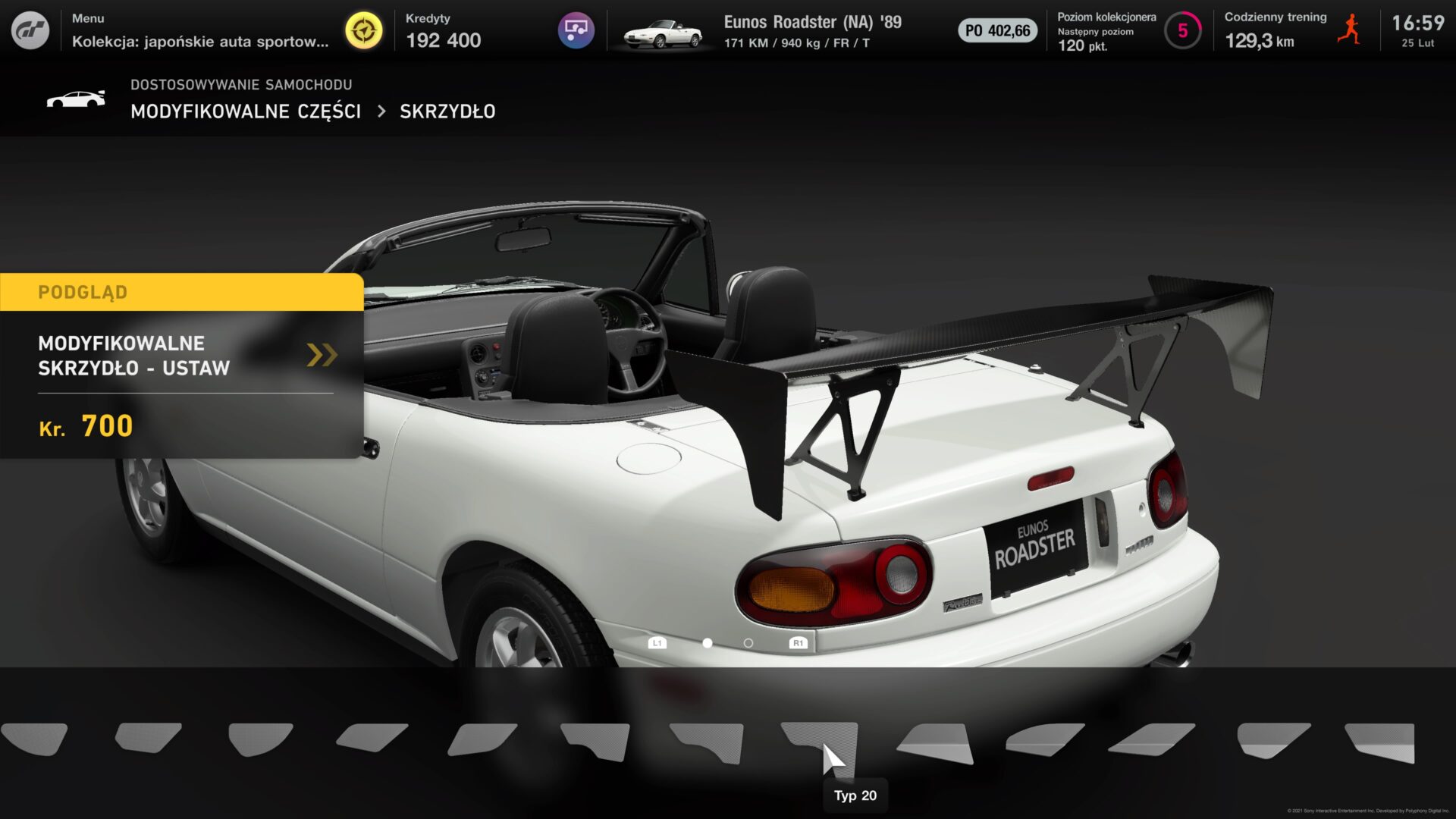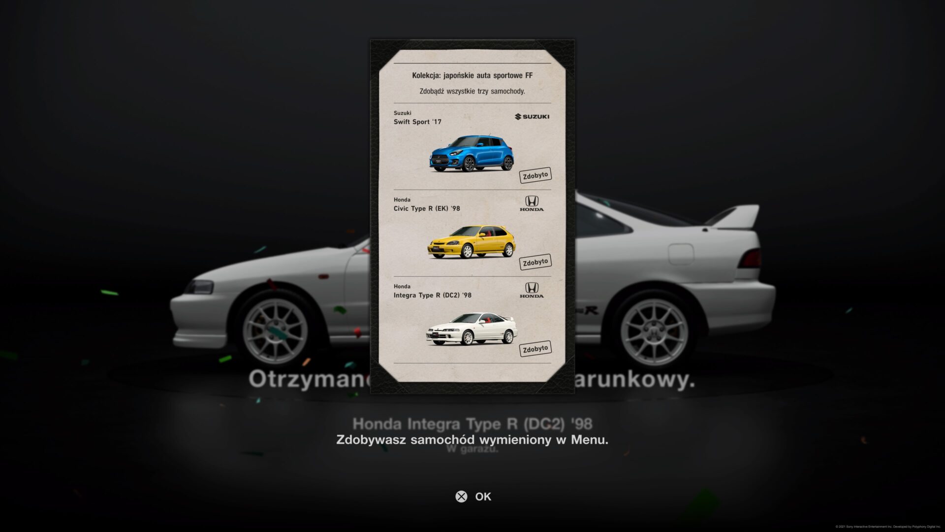 Nagrodą za uzupełnienie menu jest zazwyczaj kupon na ruletkę. W ruletce możemy wylosować jeden z pięciu przedmiotów. Może to być gotówka, części tuningowe, a nawet samochód. Niestety wylosowane części tuningowe są tylko do konkretnych samochodów, więc to poniekąd najgorsza nagroda, jaką można wylosować. Samochód trafiłem kilka razy na 40 losowań, ale zdecydowaną większość nagród stanowiła gotówka. Trudno mi powiedzieć jak duża jest kolekcja. W trakcie tygodniowego grania w Gran Turismo 7 wypełniłem prawie 40 takich kolekcji. Naszą przygodę ze zbieraniem samochodów zaczynamy od aut kompaktowych, a przechodzimy do sportowych; oczywiście osobno podzielonych na Europę, Azję i Amerykę. Z czasem będziemy zdobywać auta jednego producenta. Oczywiście każde kolejne nowe zlecenie wymaga od nas mocniejszego auta. W tym celu musimy udać się do sklepu z tuningiem.