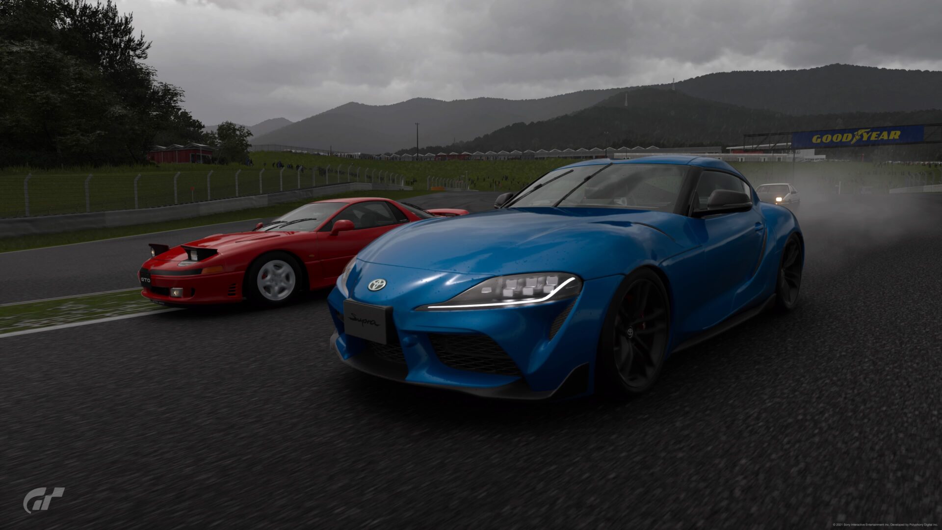 W Gran Turismo 7 w końcu doczekaliśmy się padającego deszczu, ale niestety ta anomalia dostępna jest tylko na wybranych torach. Możemy przykładowo przejechać całą nitkę Nurburgringu, SPA, czy Red Bull Ringu w deszczu. Deszcz jest niezwykle drobny, jak w prawdziwych warunkach, jadąc za innym pojazdem, praktycznie nic nie widzimy. Jedynym punktem odniesienia pozostają tylne światła auta przed nami lub patrzenie na mini mapę toru. Jeszcze w żadnej grze tak realistycznie nie zaprezentowano wody wydobywającej się spod kół, jak to ma miejsce teraz w Gran Turismo 7. Wyraźnie w głośnikach i słuchawkach słychać te krople, które z wysoką prędkością spod kół poprzedzającego auta uderzają o maskę i przednią szybę naszego samochodu.