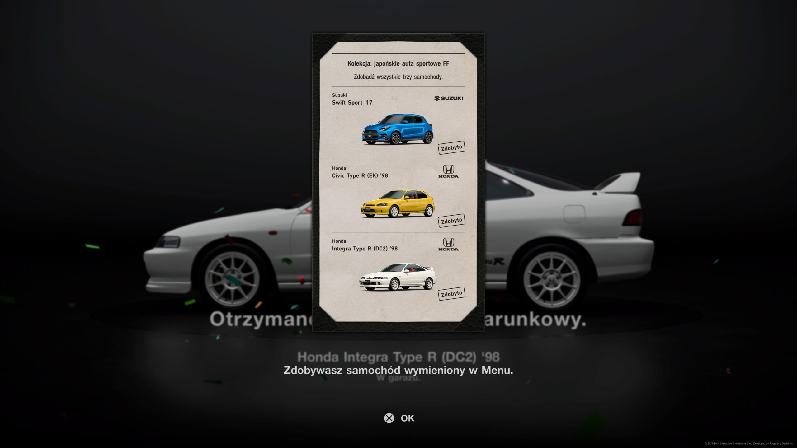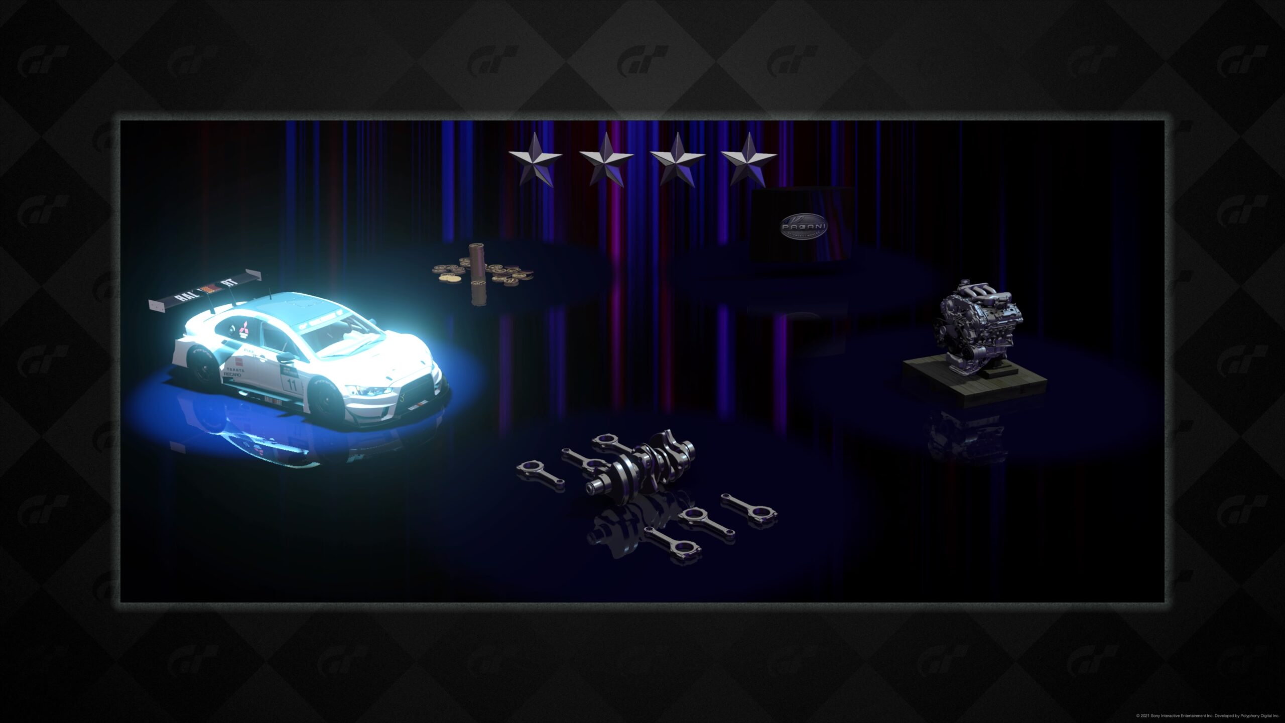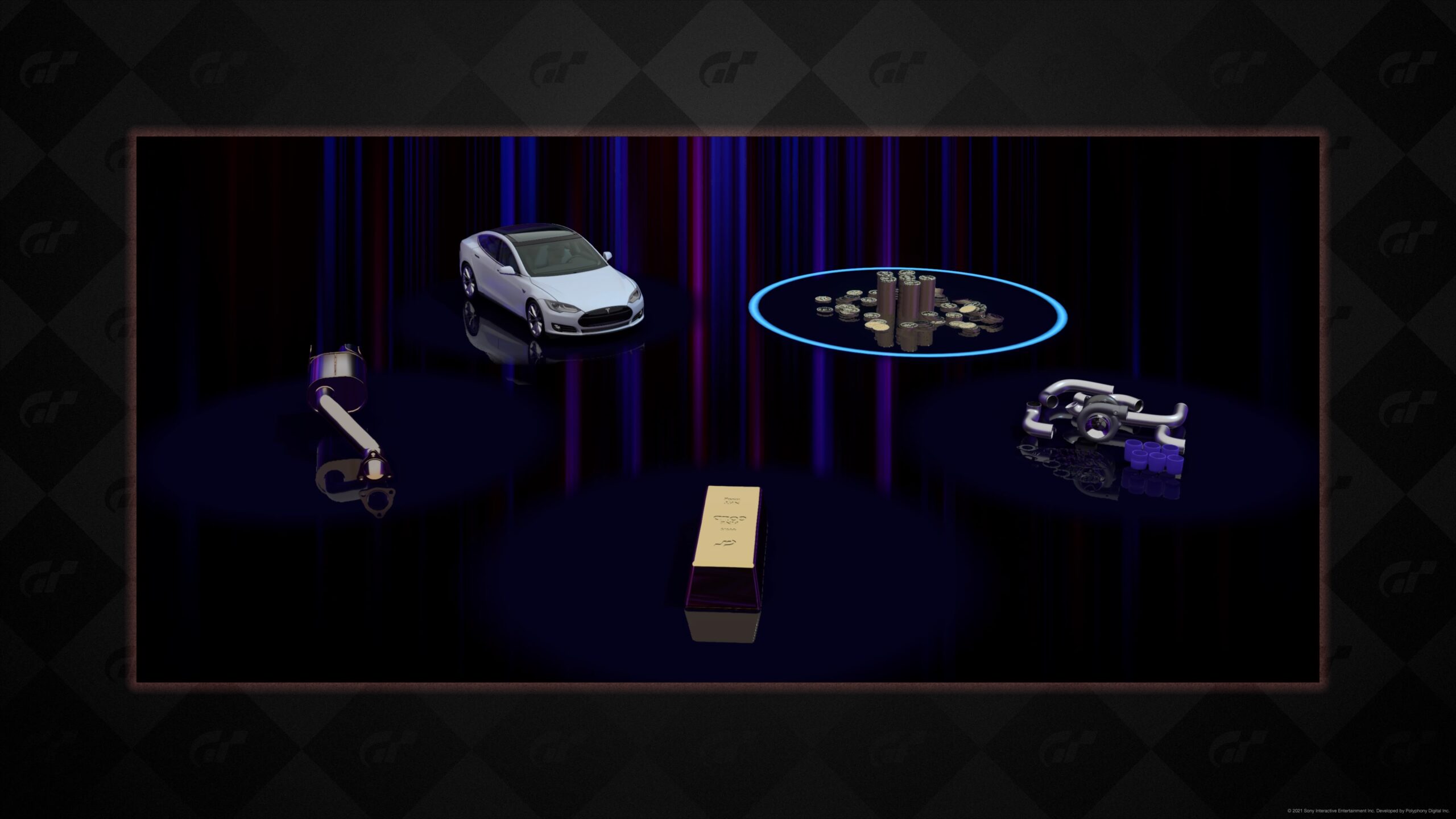 Nagrodą za uzupełnienie menu jest zazwyczaj kupon na ruletkę. W ruletce możemy wylosować jeden z pięciu przedmiotów. Może to być gotówka, części tuningowe, a nawet samochód. Niestety wylosowane części tuningowe są tylko do konkretnych samochodów, więc to poniekąd najgorsza nagroda, jaką można wylosować. Samochód trafiłem kilka razy na 40 losowań, ale zdecydowaną większość nagród stanowiła gotówka. Trudno mi powiedzieć jak duża jest kolekcja. W trakcie tygodniowego grania w Gran Turismo 7 wypełniłem prawie 40 takich kolekcji. Naszą przygodę ze zbieraniem samochodów zaczynamy od aut kompaktowych, a przechodzimy do sportowych; oczywiście osobno podzielonych na Europę, Azję i Amerykę. Z czasem będziemy zdobywać auta jednego producenta. Oczywiście każde kolejne nowe zlecenie wymaga od nas mocniejszego auta. W tym celu musimy udać się do sklepu z tuningiem.