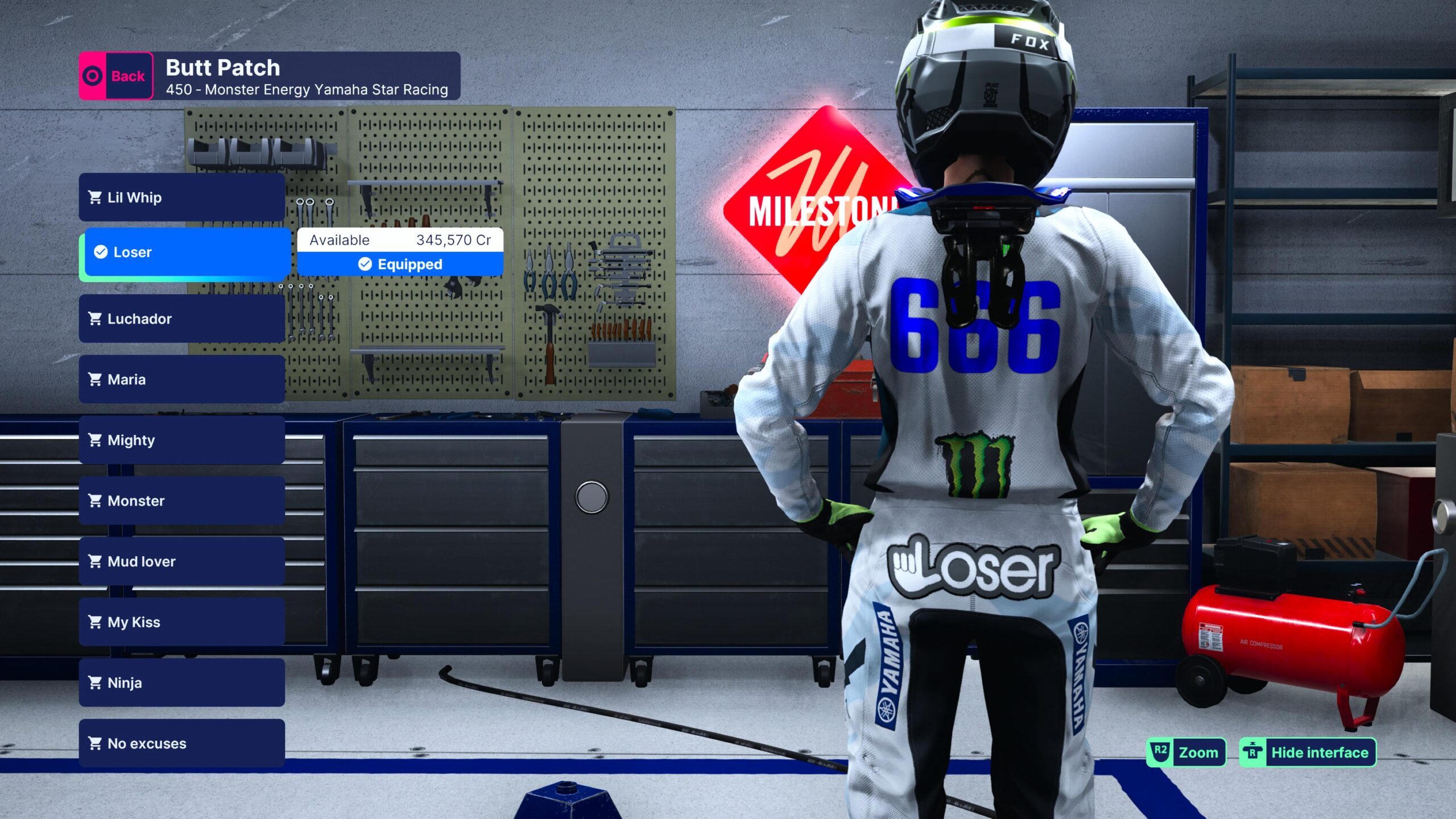 To, jak wygląda nasz zawodnik na samym początku to tak naprawdę początek naszej zabawy z jego kombinezonem. Ustalamy sobie naszą cyfrę (0-999), która będzie nas reprezentować. Chyba nikogo nie zdziwi fakt, że moja zawodniczka dorobiła się przezwiska Tsumi, niebieskich włosów, tatuaży i kolczyków. Ponadto możemy wybrać naszywki na kombinezon, ochraniacze, zmieniać kolor gogli i dodawać naklejki na kask. Innymi słowy, jest się z czym bawić. Oczywiście, poszczególne elementy możemy odblokować, osiągając kolejny poziom, kończąc zawody i wyzwania, oraz w trybie swobodnej jazdy zbierając punkty.