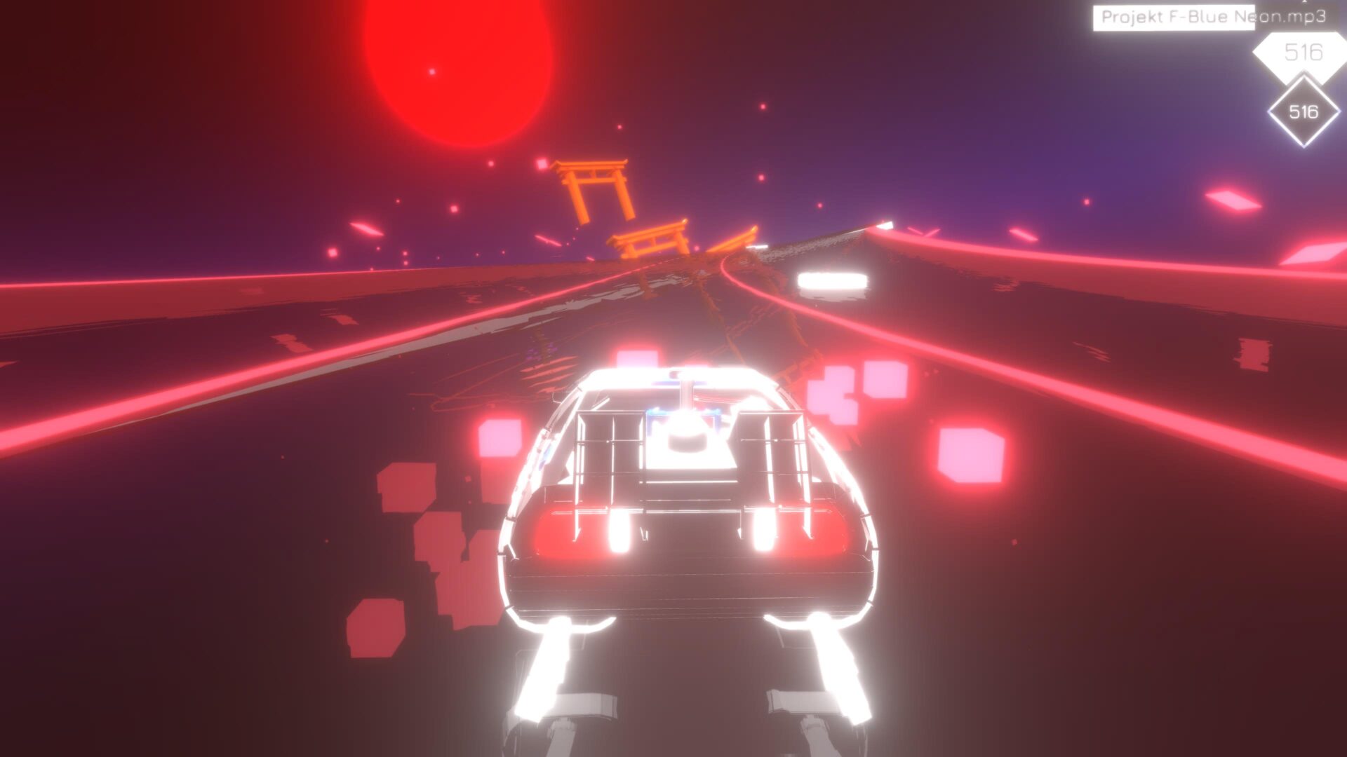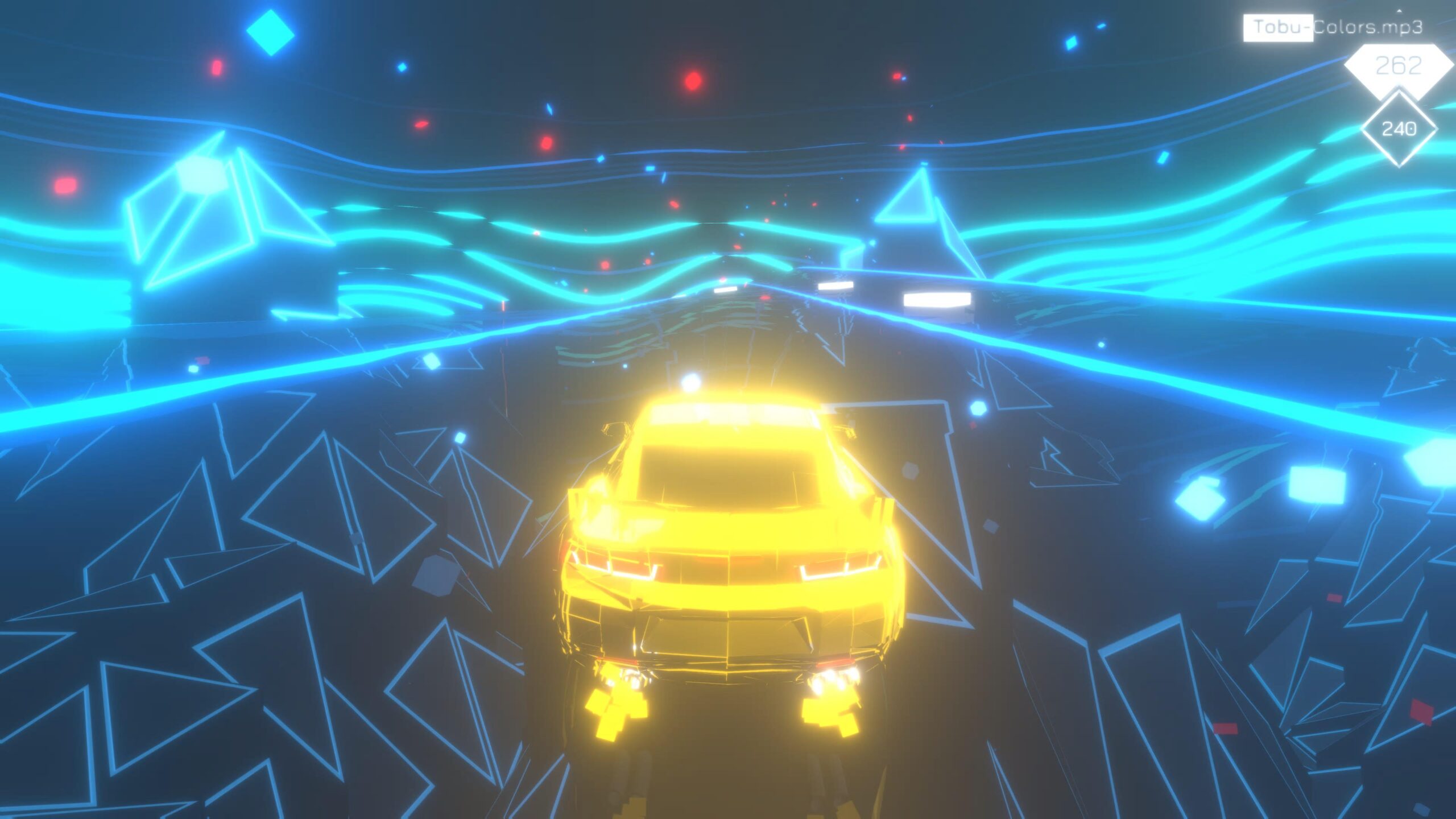 Rozgrywka może się odbywać na cztery różne sposoby. Tryb LOCAL pozwala nam zbierać punkty na wybranej trasie, omijając co jakiś czas kilka przeszkód. Bo zderzeniu się z jedną z nich, tracimy punkty COMBO i kontynuujemy jazdę. Tryb ZEN to doskonały tryb do zbierania punktów, nie znajdziemy w nim dosłownie żadnej przeszkody. Jedyną, jaką napotkamy, są kolorowe i drżące trasy oraz pad wibrujący w rytm basów. Tryb CINEMA pozwala nam cieszyć się muzyką i podziwiać wizualny aspekt całej gry. Nie robimy w tym trybie absolutnie nic – samochód sam pokonuje trasę, a muzyka umila nam czas. Kolejnym z trybów jest tryb HARD, w którym przez większość trasy unikamy przeszkód, których jest o wiele więcej niż w trybie LOCAL.