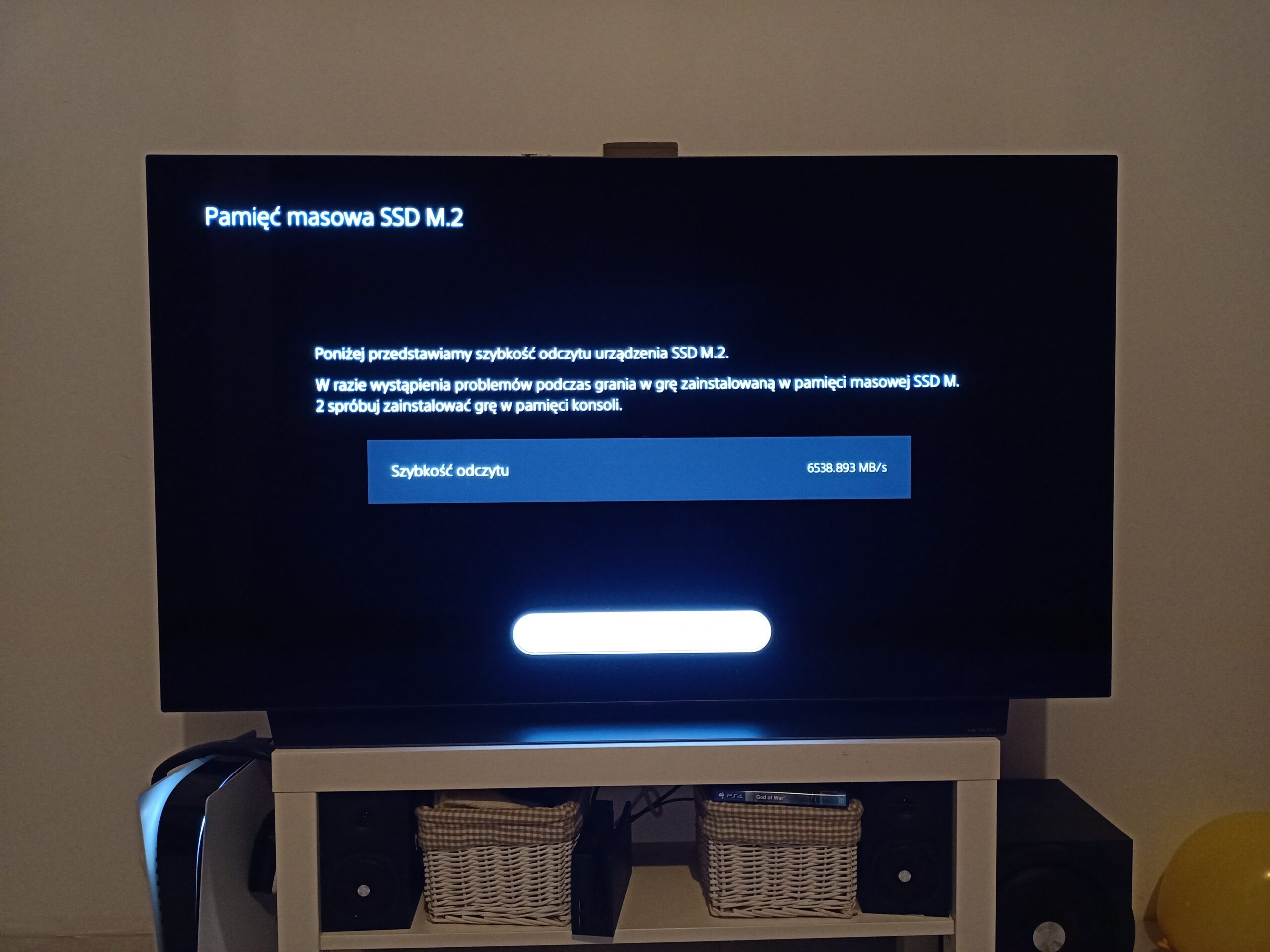9. Teraz kolej na ustawienia wewnątrz systemu. Po pierwsze, konsola poprosi o sformatowanie dysku i poda pierwsze wartości z odczytu. W tym wypadku PlayStation5 obliczył prędkość odczytu XLR8 CS3140 na 6,5 GB/s, czyli gigabajt mniej niż zapowiedziany w specyfikacji. Mniejsze osiągi w tym miejscu zdarzały się również innym dyskom, między innymi Samsungowi 980PRO, który osiągnął 5,7 GB/s. Warto również ustawić punkt zapisu gier dedykowanych PS5 na nasz nowy dysk. Ustawienie to znajdziecie w menu pamięci masowej w opcjach konsoli.